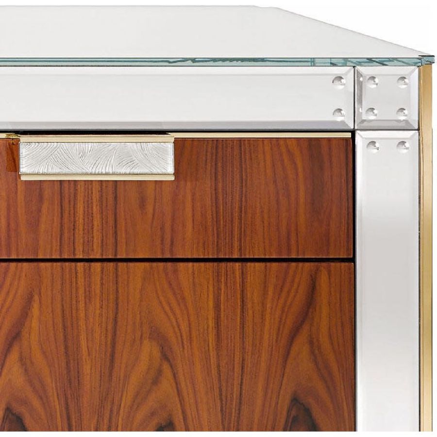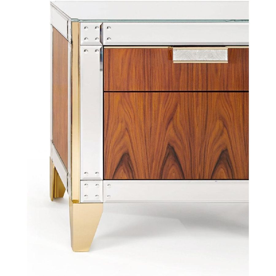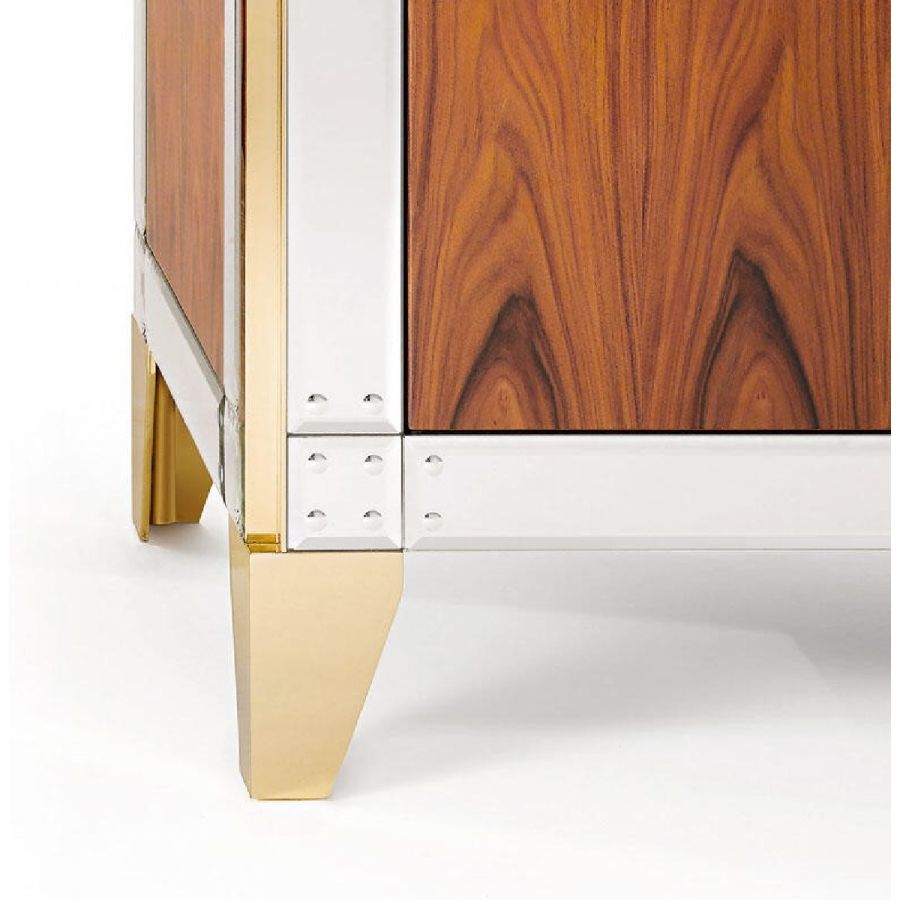 Nightstand in shiny rosewood with inserts in brass and bands in bevelled and hand engraved extraclear mirror.