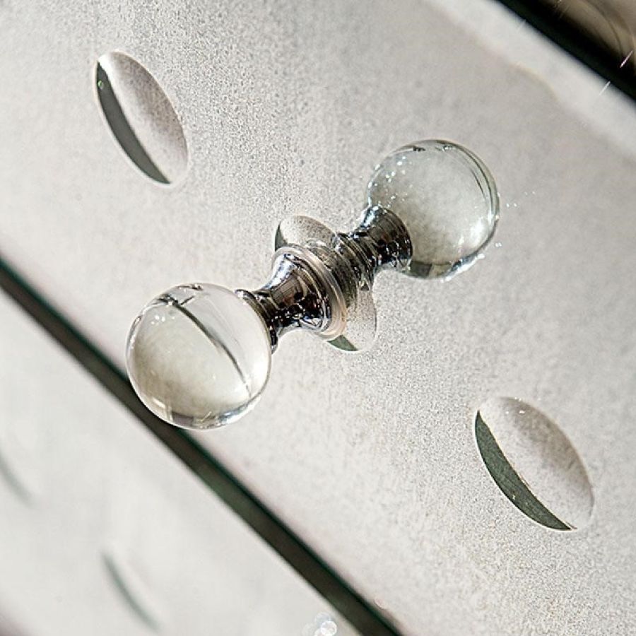 Shiny sphere engravings. Smooth knobs with chrome-plated finish.