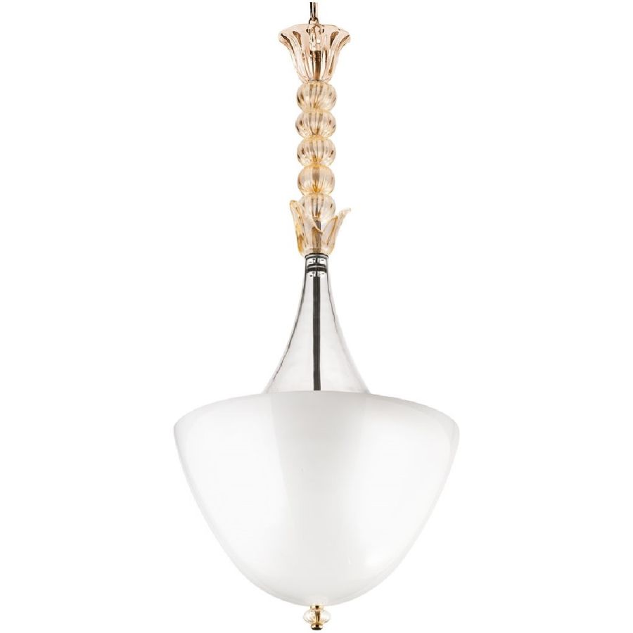 Art Déco chandelier with 3 lights in white and crystal gold handmade Murano glass.