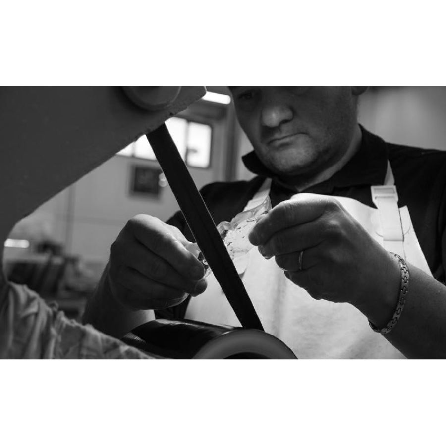 Handmade thumbnail bevelling is a very particular and artistic way to bevel. Arte Veneziana's glass masters use bigger wheels than the ones they use to engrave glass.