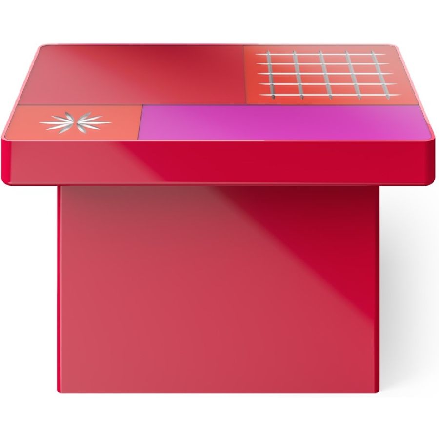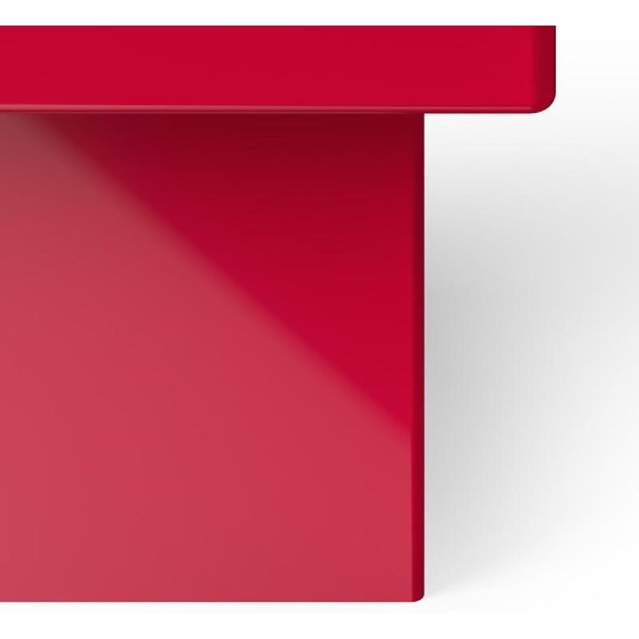 Licorice coffee tables to pair up. Antique rose and/or fire engine red lacquered plywood structure.