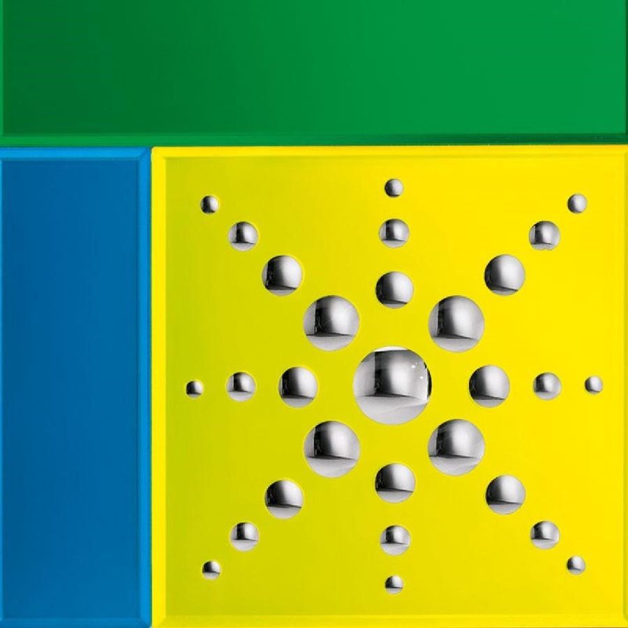 Geometric motifs with mirrored finish engravings.