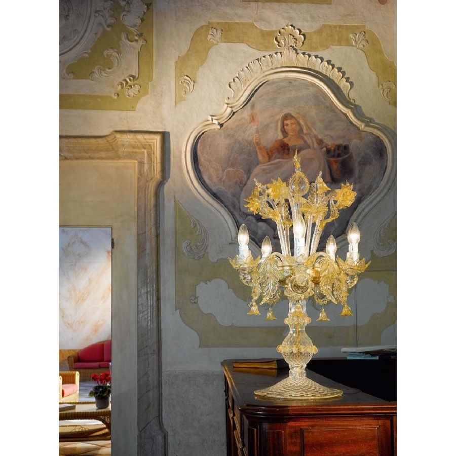 Venetian style table lamp with five crystal gold hand-blown Murano glass lights.