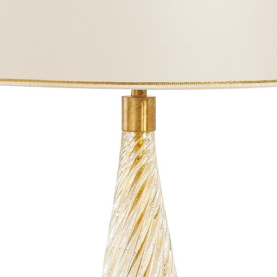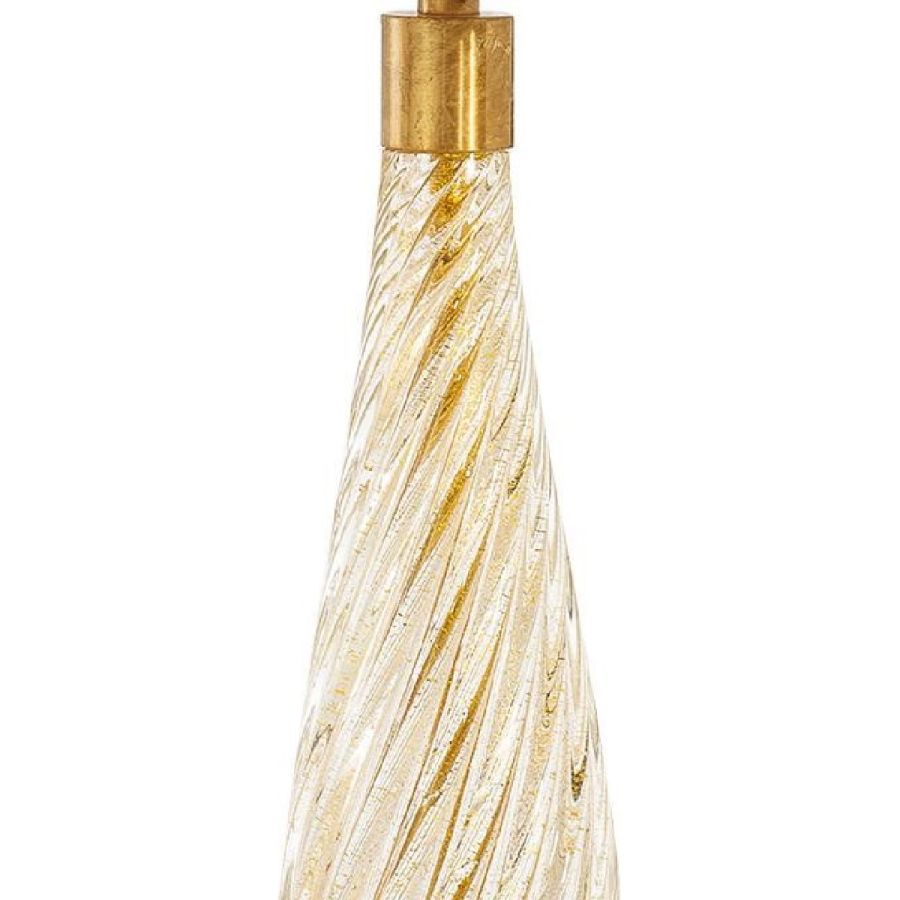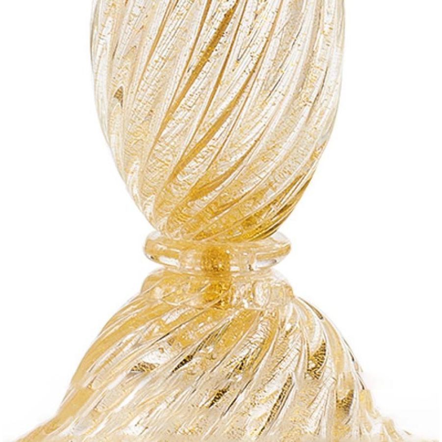 Venetian style table lamp with one 'torchon' shaped crystal gold hand blown Murano glass light. Structure in brass.