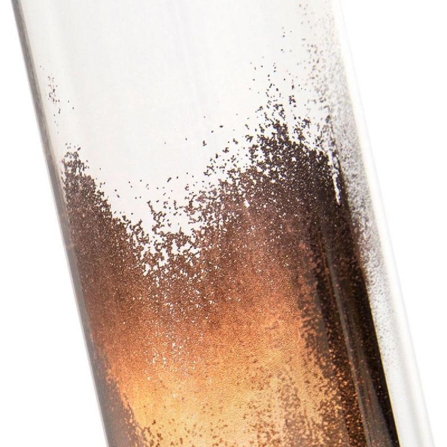 Metal structure with black coloured antiqued brass finish. Cylindrical-shaped glass lampshade, with medium antique mirrored finish on the edges and partially transparent on the centre, “Lagune” style with 1 light.