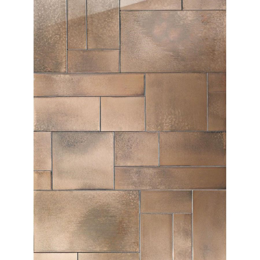 Structure made of multilayered wood. Bronze glass tiles with varying dimensions and a medium antique mirrored finish. Size: custom.