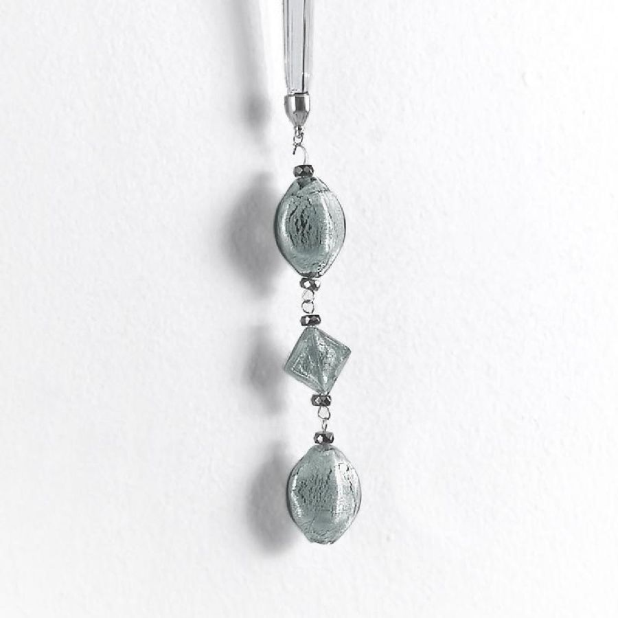 Structure made of brass with shiny chromed finishing. Blown glass, crystal colour and Murano glass pendant.