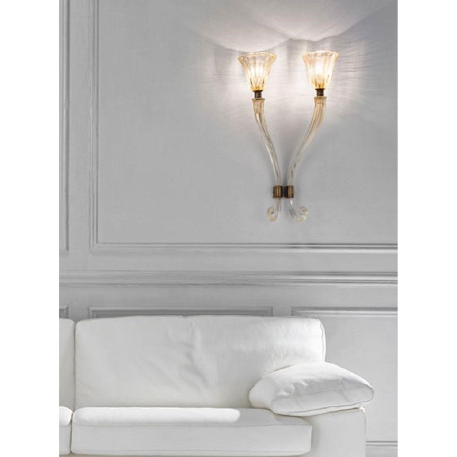 Arte Veneziana's wall lights are more than just lighting fixtures — they are handcrafted pieces of art that blend light with intricate Venetian design. Featuring hand-engraved glass, ornate metalwork, and refined finishes, each wall sconce exudes timeless elegance and a touch of theatricality.