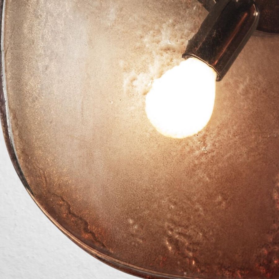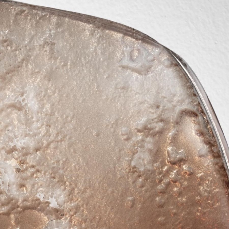 Decorative baked glass elements in two layers with irregular edges. All decorated in degradé from bronze to transparent with partial silvering on the back.