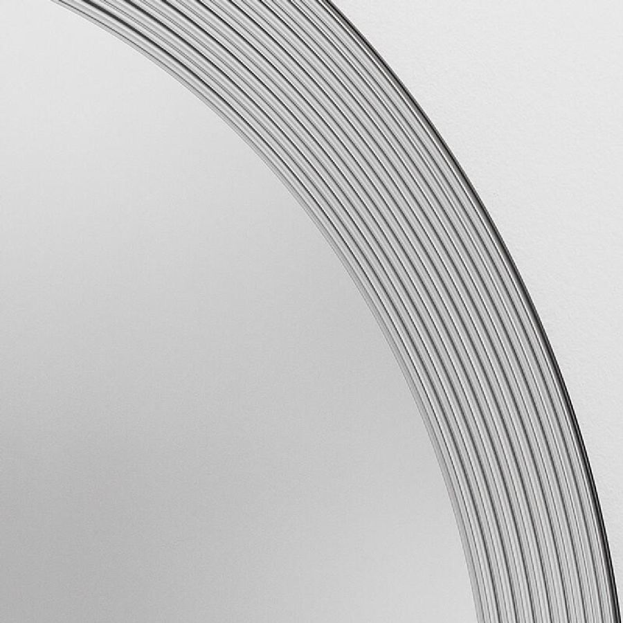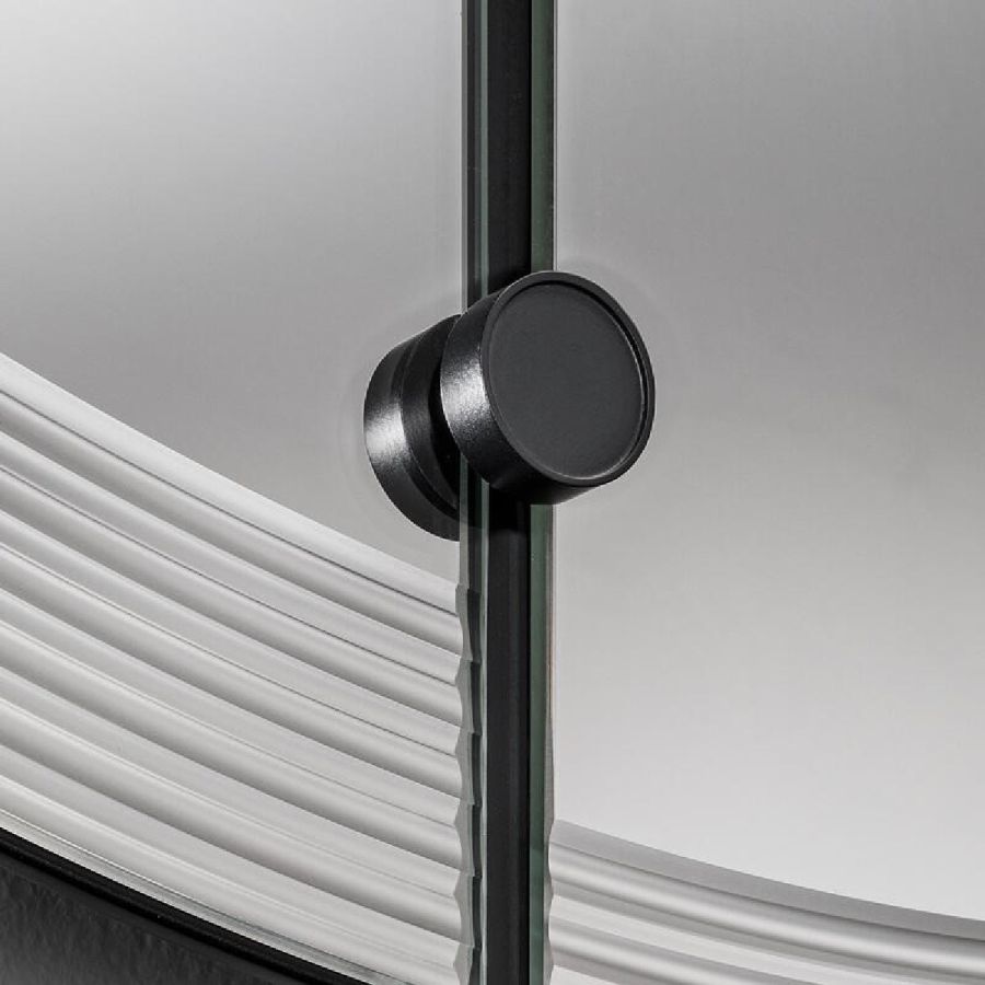 Extra-clear mirror decorated with 'U' engraving. Application of metal circular screws.