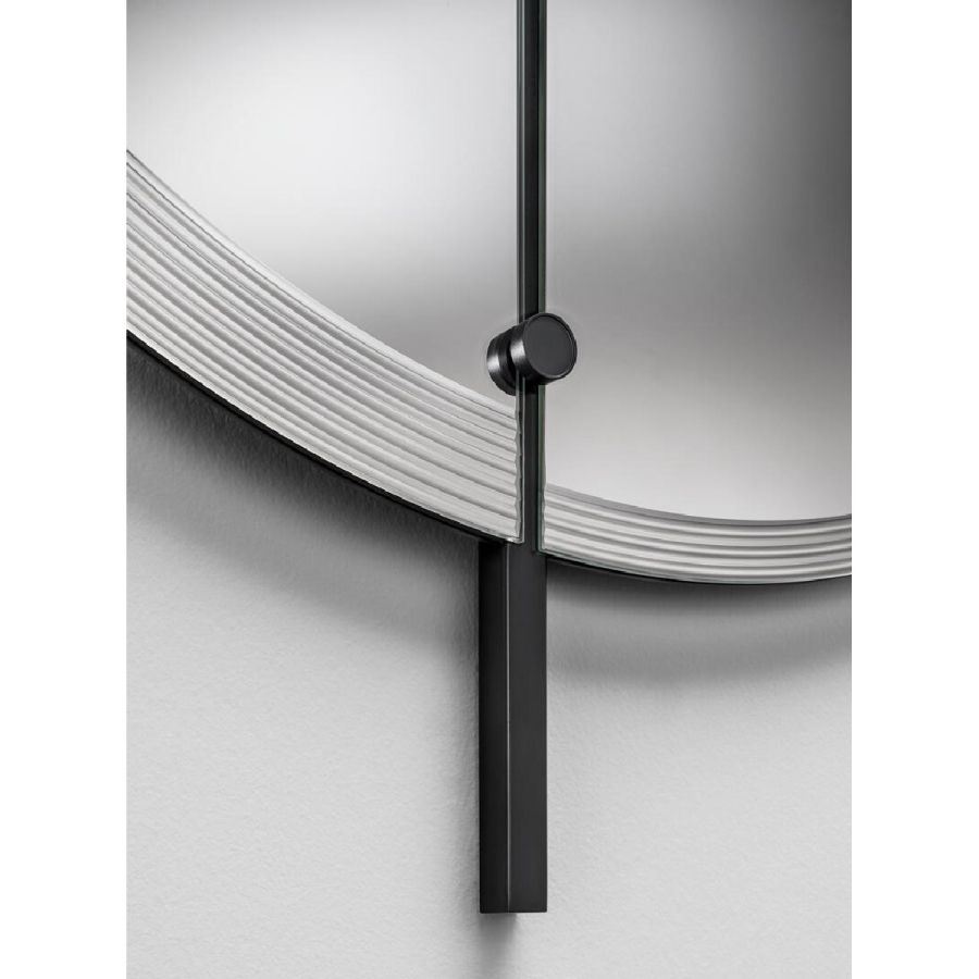 Round mirror designed by Jean-Michel Wilmotte. Square metal structure matt black gray lacquered.