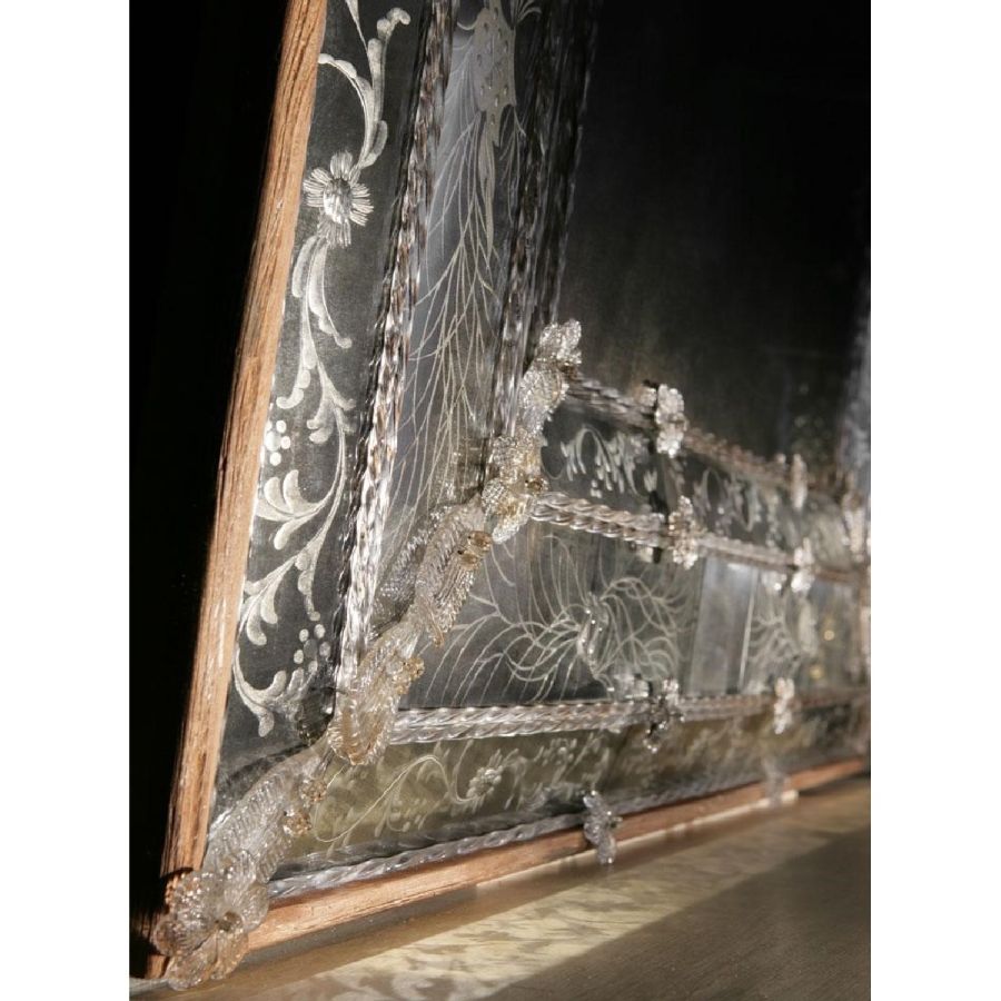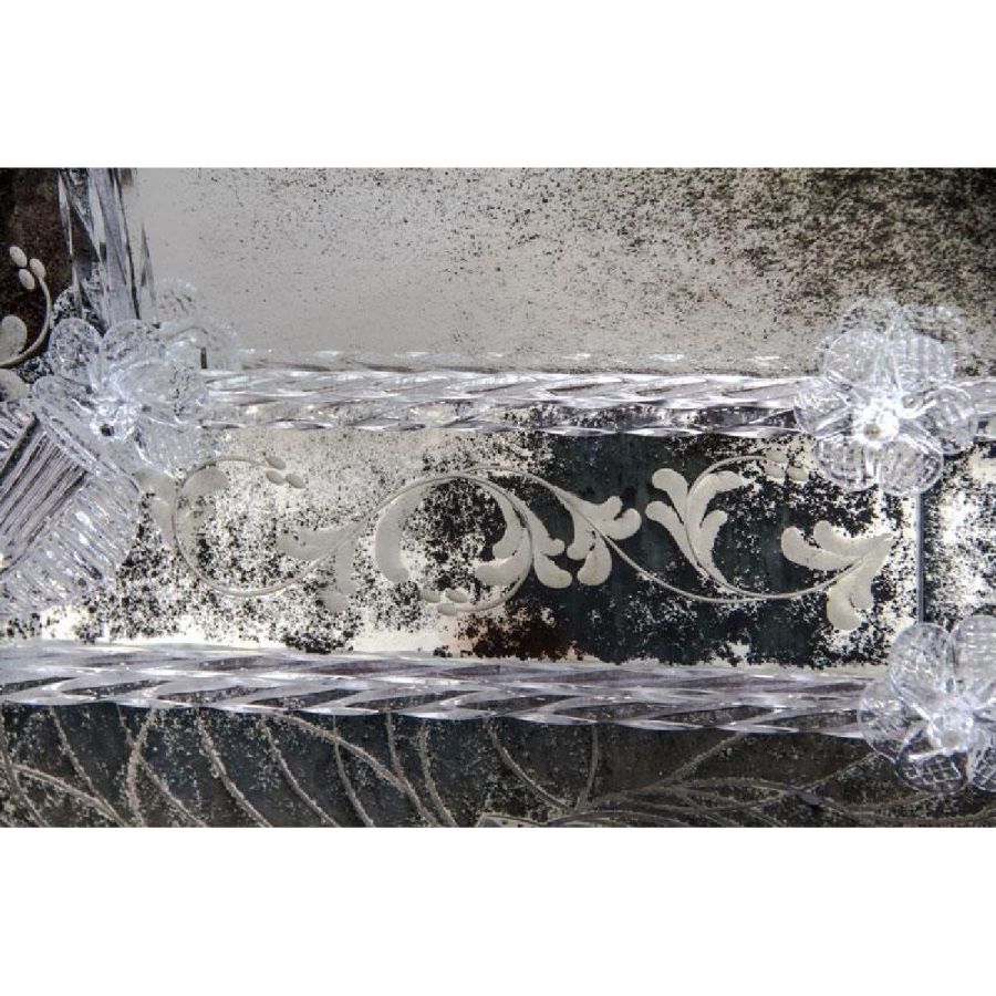 The most famous characters are the typical engraved curl finishings together with the depiction of Bacco, Justice or the well-know Venetian Eighteenth-century . Crystal colored Murano decorative flowers, leaves, twisted ropes and multicoloured glass paste rosettes embellish each Venetian mirror. The result is a unique item comparable to a work of art for craftsmanship and excellence in its execution.