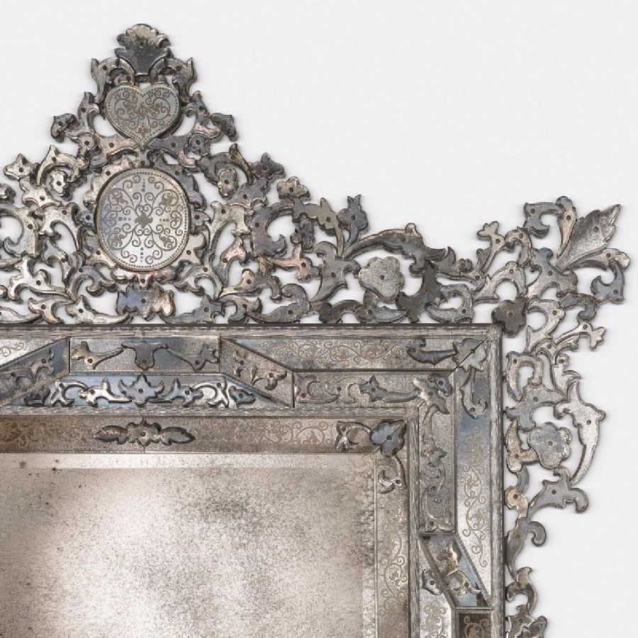 Frames and crest made of bevelled and engraved glass with heavy antique mirrored finish.