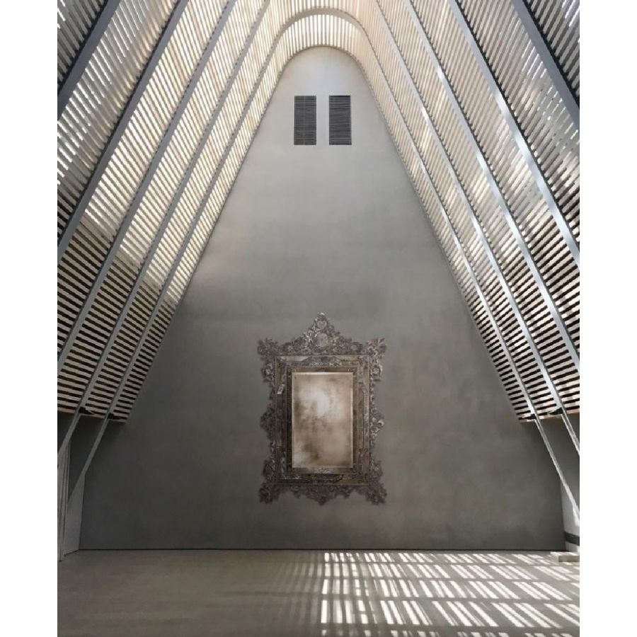 A French mirror is in fact made of lots of different bevelled pieces that are close together and create an harmonious geometrical figure. A beautiful example is , an iconic mirror by Arte Veneziana that is made of 412 hand bevelled pieces. The most visible difference between a Venetian and a French mirror is the total absence of hand-blown glass decorations on the latter.