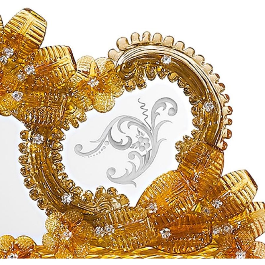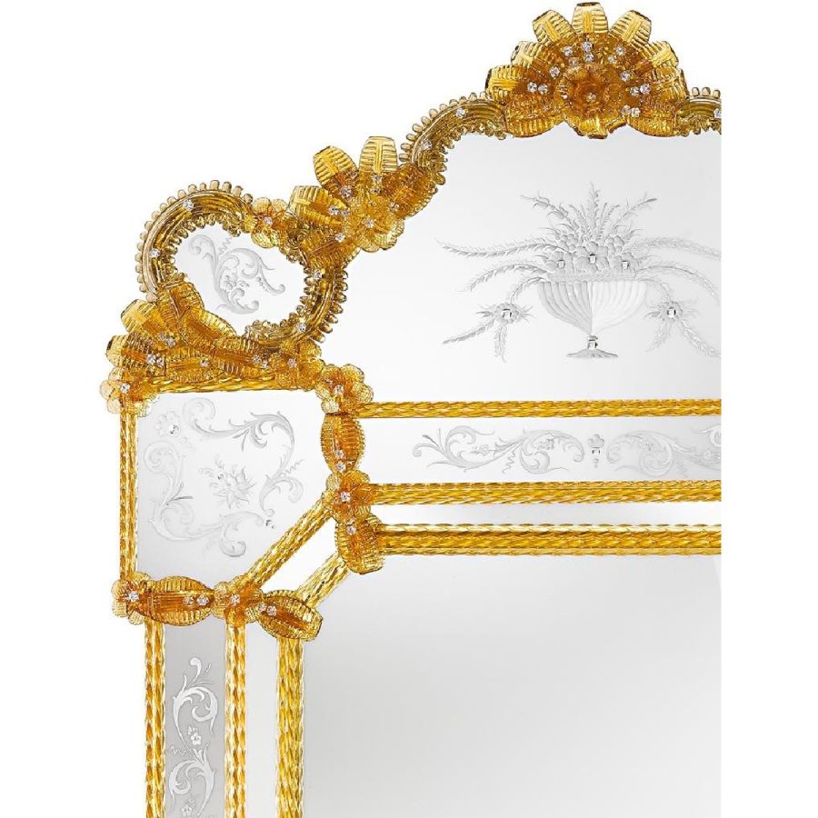 Last but not least: do not worry if the mirror's decorations seem badly fixed. Our master artisans preserve the historical tradition in avoiding fixing the glass parts. In fact leaving those parts mobile and tying them with an iron wire is the correct procedure both to respect Venetian roots and above all, to avoid damage and breakage of the glass.