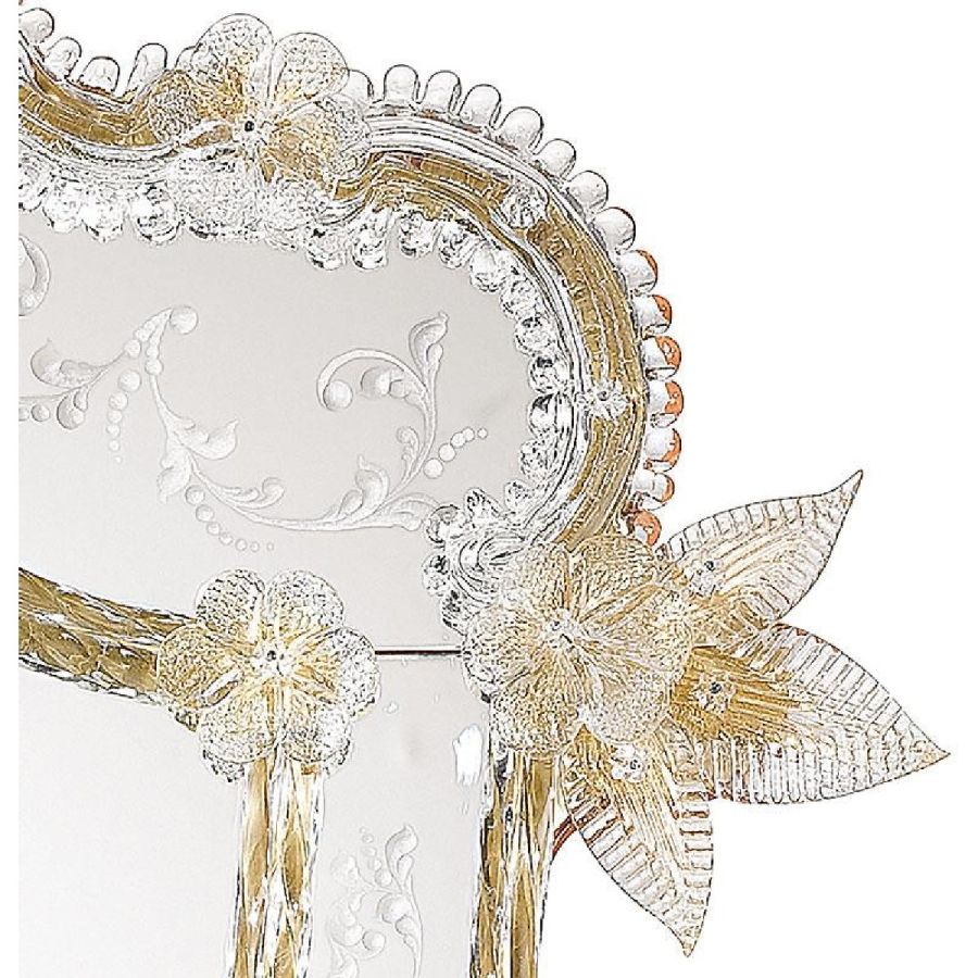 Last but not least: do not worry if the mirror's decorations seem badly fixed. Our master artisans preserve the historical tradition in avoiding to fix the glass parts. In fact leaving those parts mobile and tying them with an iron wire is the correct procedure both to respect Venetian roots and above all, to avoid damage and breakage of the glass.