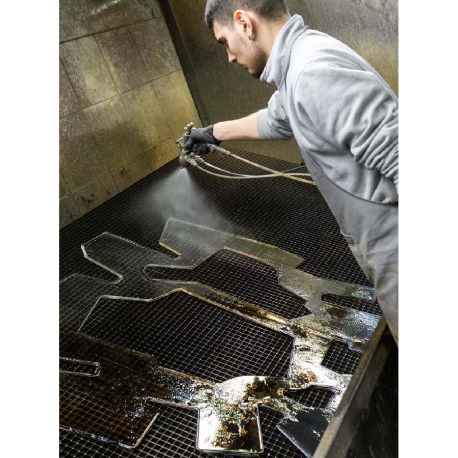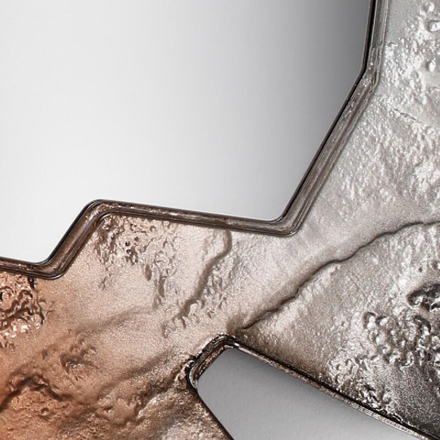Baked glass frame in two layers with irregular edges, varnished in gradation from bronze to transparent, the entire piece is silvered with a medium antique finish.