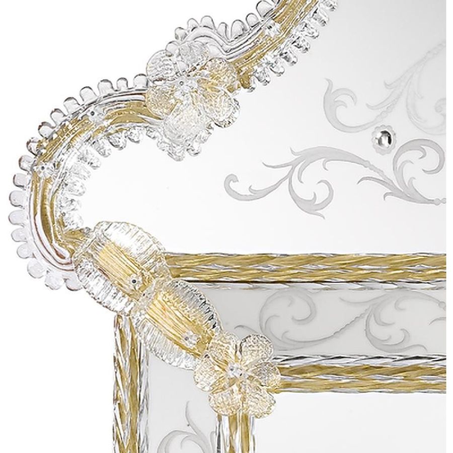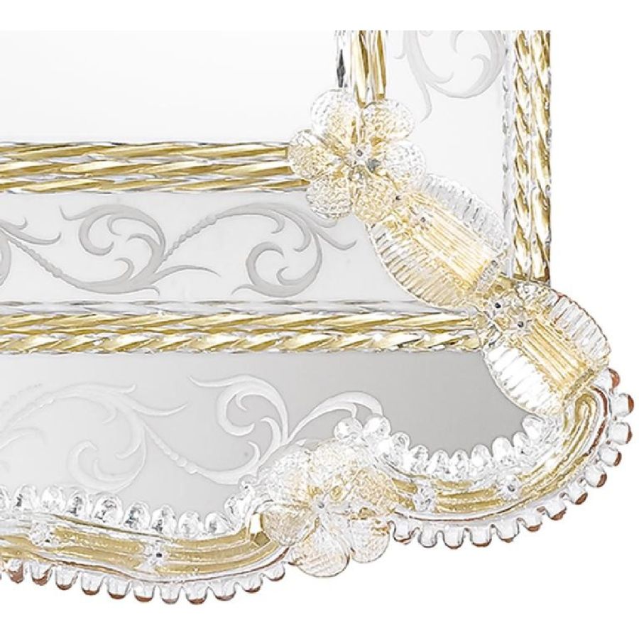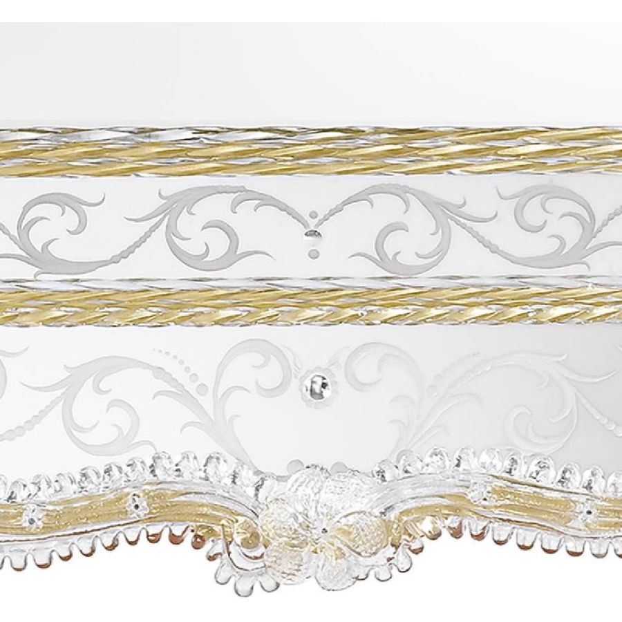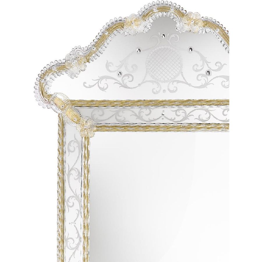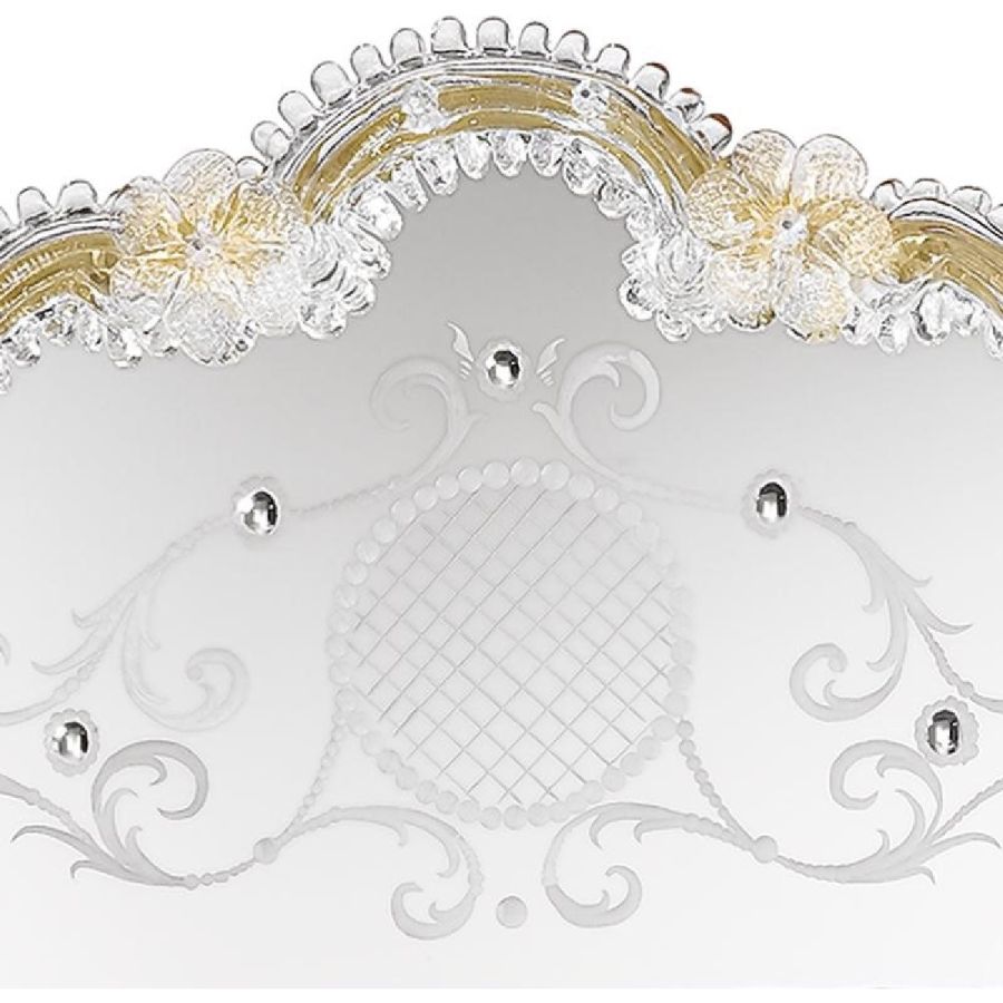 Last but not least: do not worry if the mirror's decorations seem badly fixed. Our master artisans preserve the historical tradition in avoiding fixing the glass parts. In fact leaving those parts mobile and tying them with an iron wire is the correct procedure both to respect Venetian roots and above all, to avoid damage and breakage of the glass.