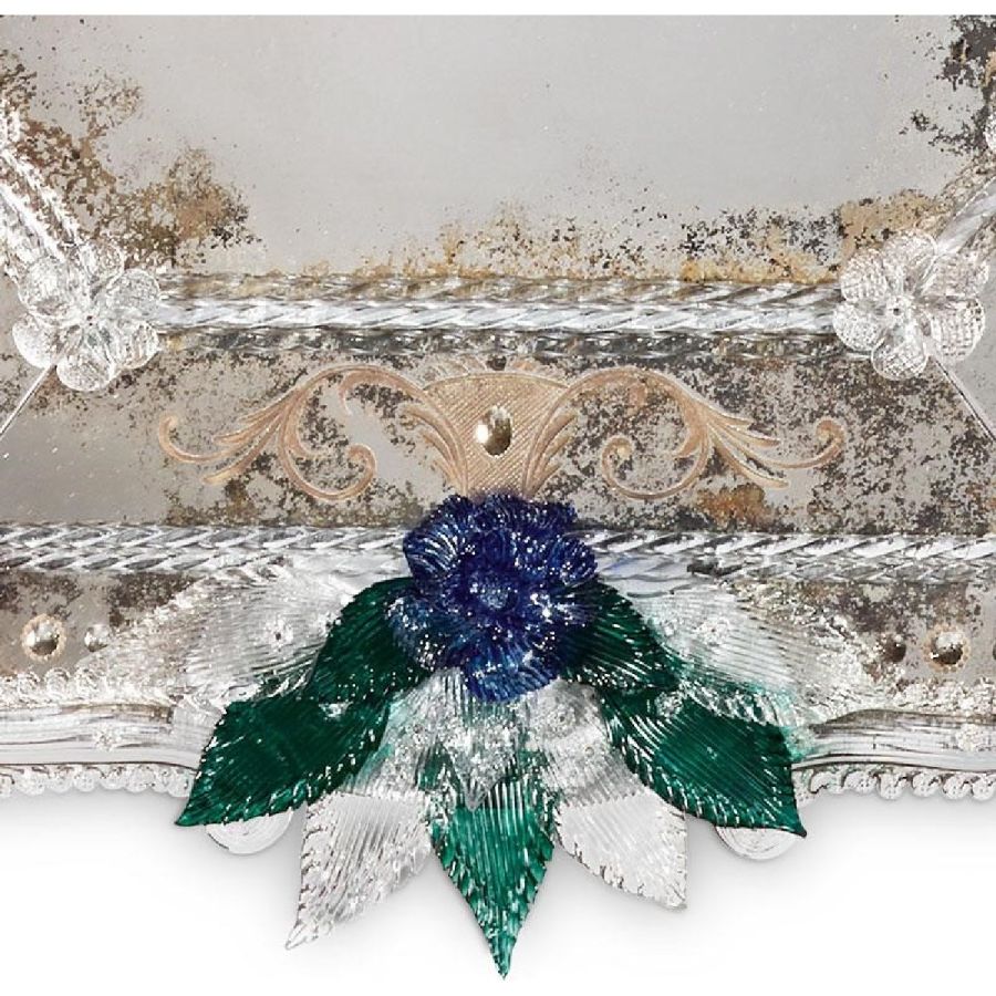 Last but not least: do not worry if the mirror's decorations seem badly fixed. Our master artisans preserve the historical tradition in avoiding to fix the glass parts. In fact leaving those parts mobile and tying them with an iron wire is the correct procedure both to respect Venetian roots and above all, to avoid damage and breakage of the glass.