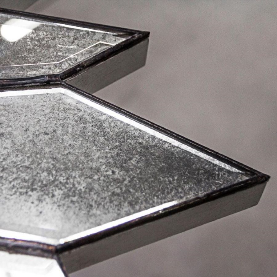 Structure made of wood with silver antique leafed edges. Central part, inner frame and beams made of bevelled glass with medium antique mirrored finish. All parts are lead bound.