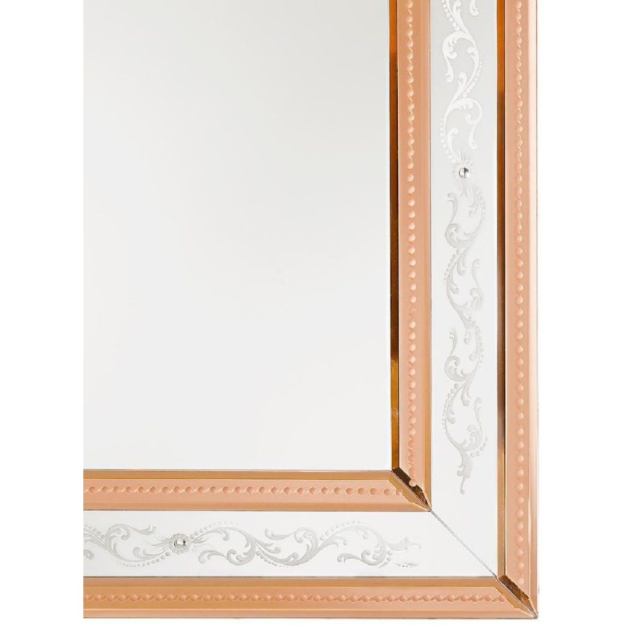 Hand bevelled and engraved mirror in 18th century Venetian style with double frame in pink bevelled mirror.