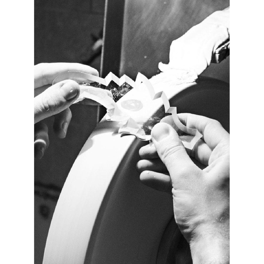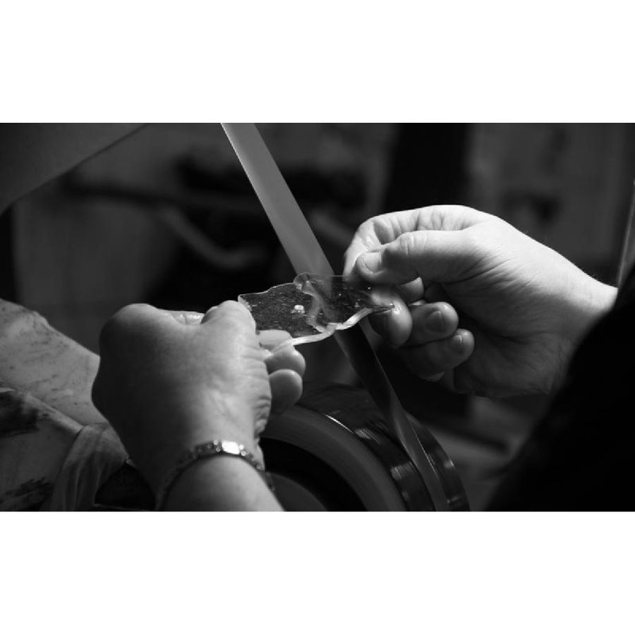 This is a fundamental step in our production: no machines can replace the manual work on this extremely delicate matter. The bevelling can only be realised with a long and precise handmade procedure.