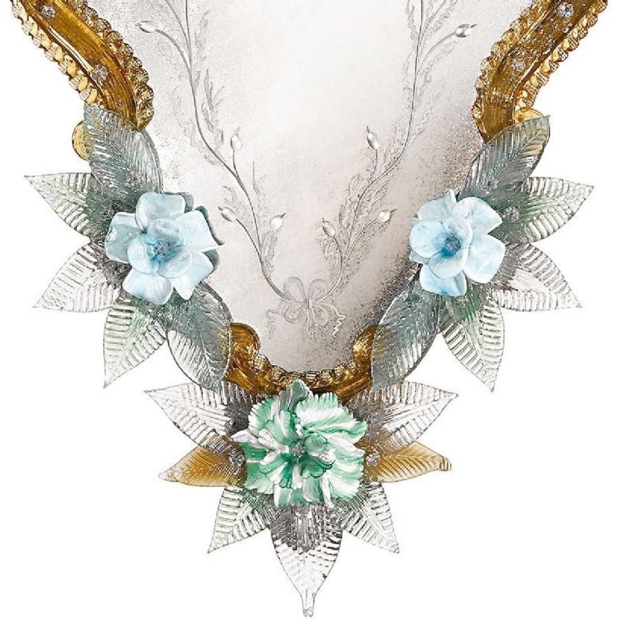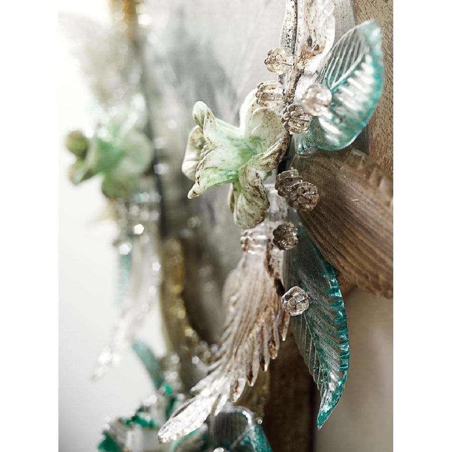Last but not least: do not worry if the mirror's decorations seem badly fixed. Our master artisans preserve the historical tradition in avoiding to fix the glass parts. In fact leaving those parts mobile and tying them with an iron wire is the correct procedure both to respect Venetian roots and above all, to avoid damage and breakage of the glass.