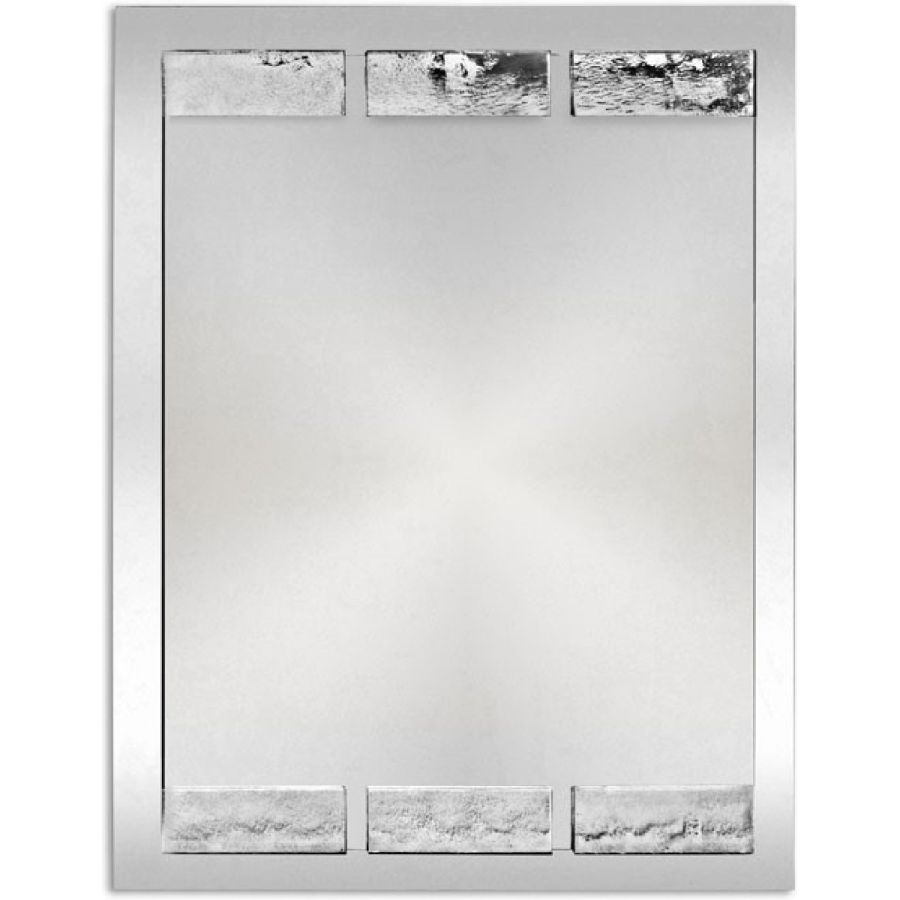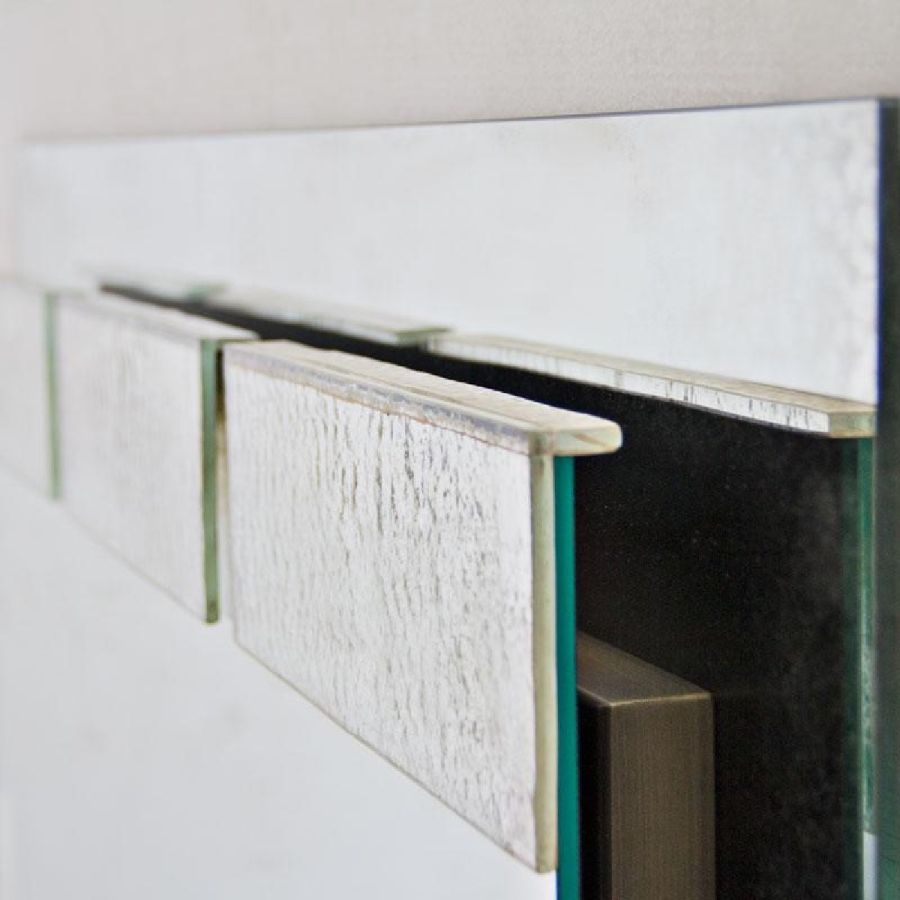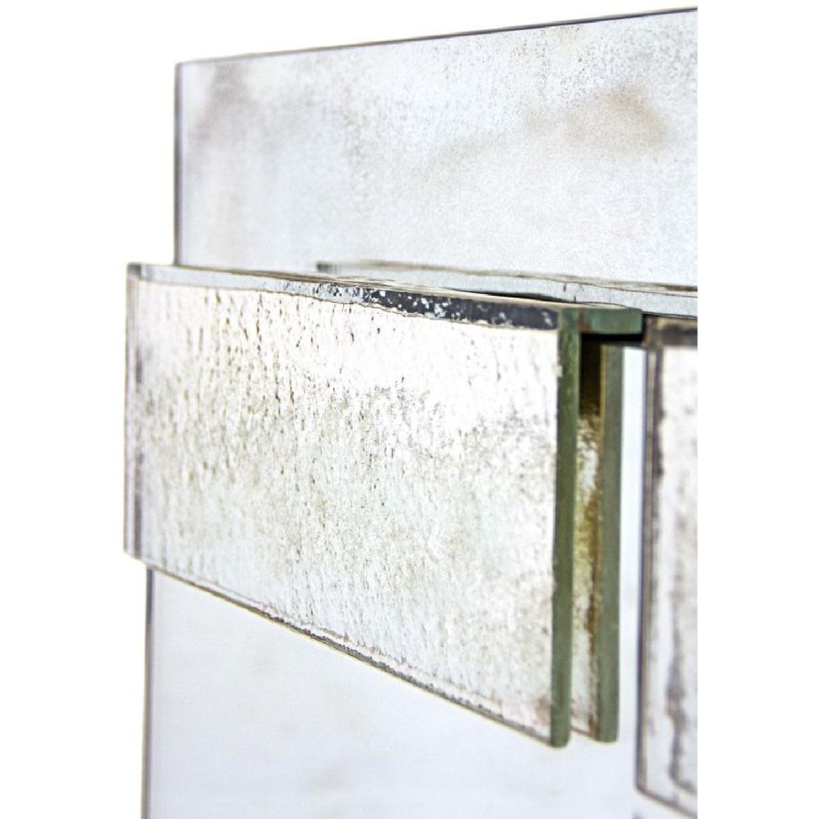 Six decorative tiles on the front side made of backing glass with a partially mirrored finish.