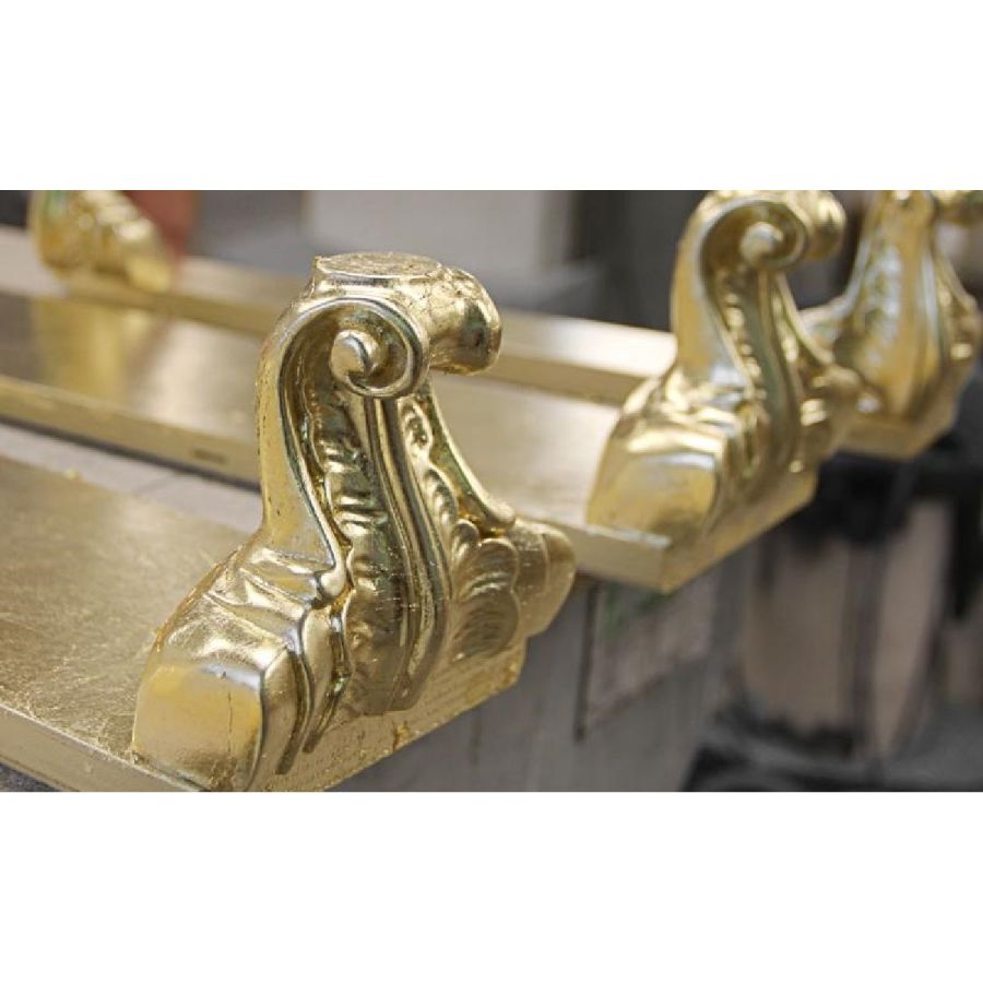 Structure made of wood with cream coloured matte lacquered finish. Five legs, crest details and two shell-shaped handles made of hand carved lime wood with gold antique leafed finish.