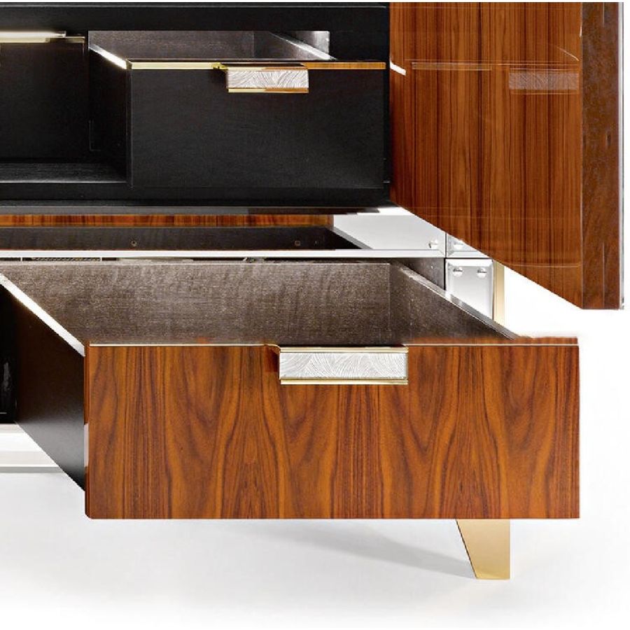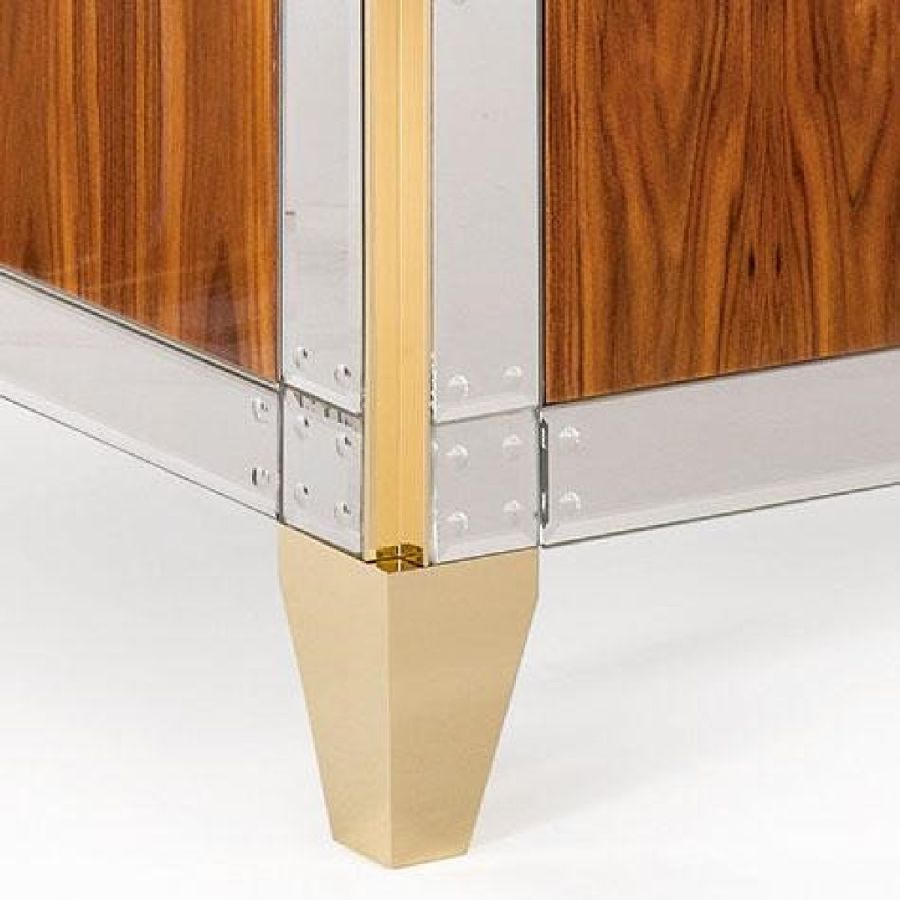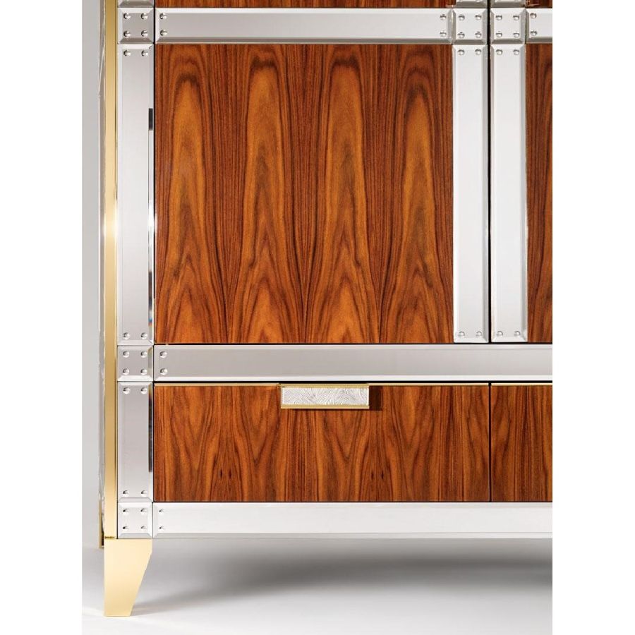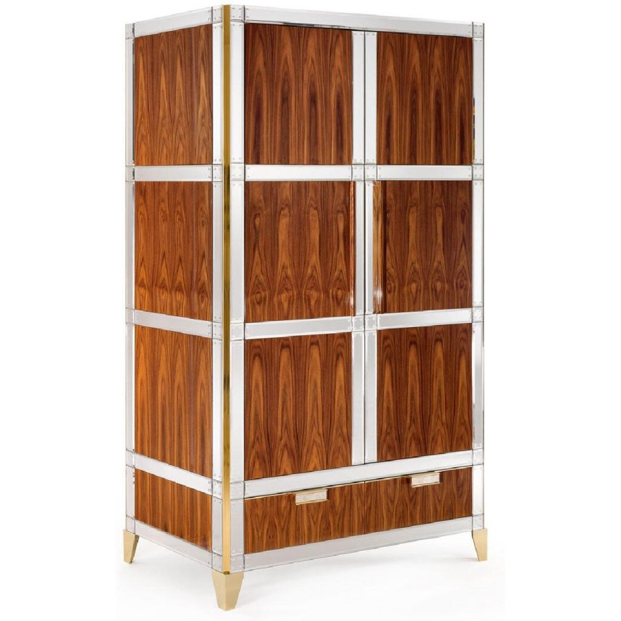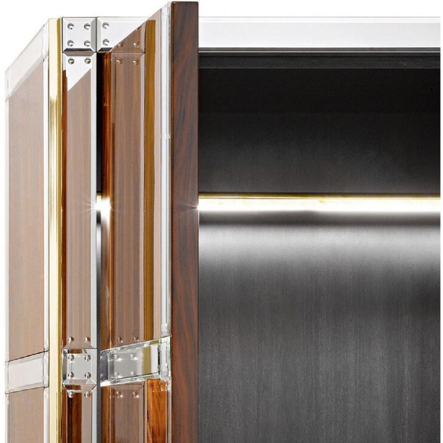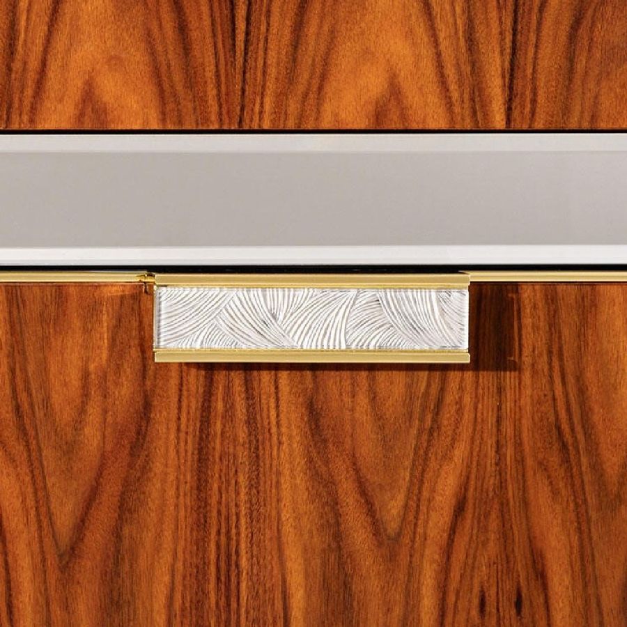 Cabinet in shiny rosewood and inserts in brass, bevelled and hand engraved bands in extra-clear mirror.