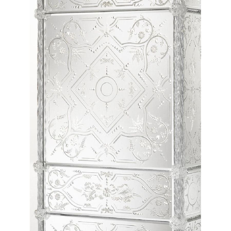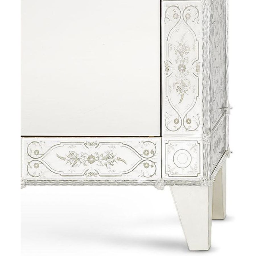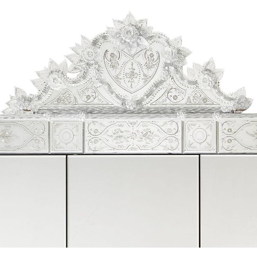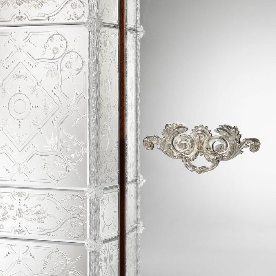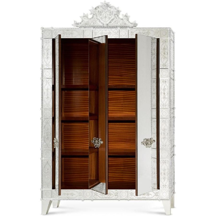 Arte Veneziana wardrobes are more than mere storage—they are grand gestures of artisanal mastery and timeless beauty. Each piece is entirely handcrafted using traditional Venetian techniques, combining engraved glass panels, mirrored surfaces, and precious wood finishes. These wardrobes not only serve a practical purpose but also become elegant focal points within any refined interior.