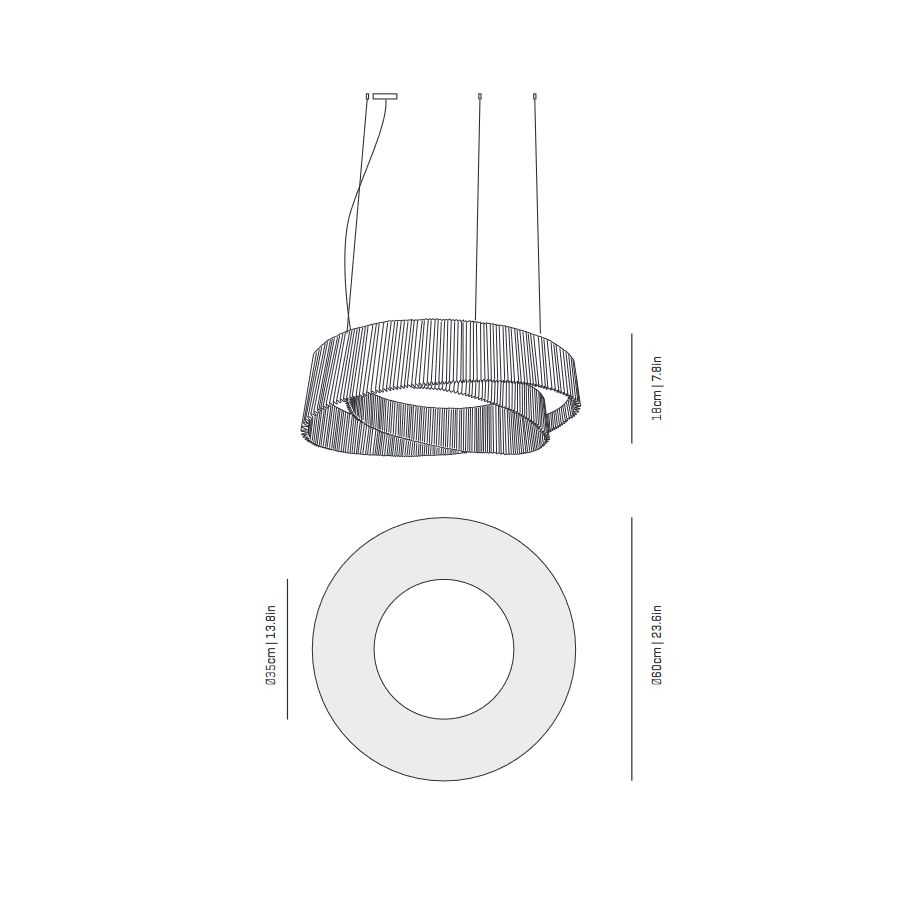 Vårt interna team började med idén om ljuskrona och textur för att utveckla detta tak- och upphängningsförslag. Med sin cirkulära ljusfördelning erbjuder Anel tillräcklig ljuseffektivitet för denna typ av produkt, och ytmonteringen gör den enkel att installera. De två cylindrarna i stålnät som omger ljuskällan bildar en uppsättning plan, diagonala linjer, texturer och koncentriska former som gör Anel till en pjäs med sin egen estetik och elegans.