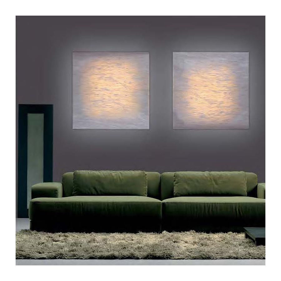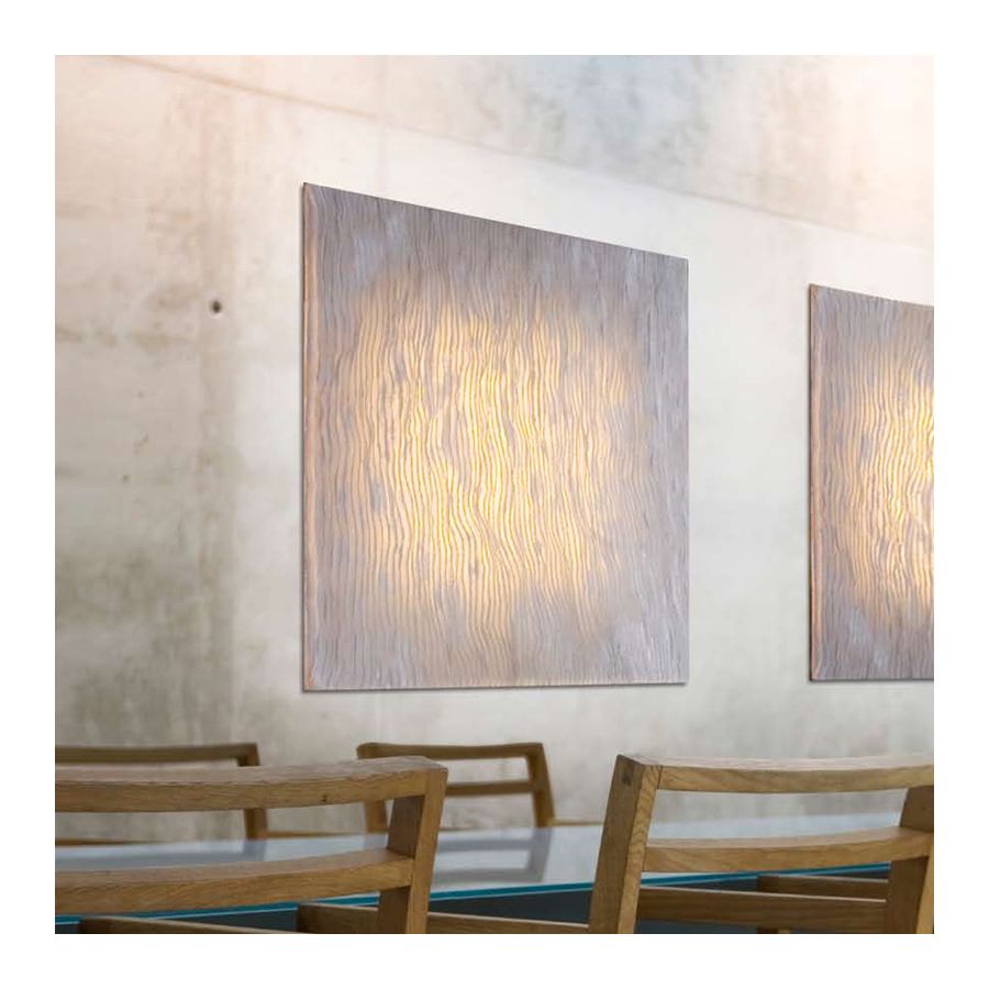 Belysningslösningar som kan användas för att täcka stora ytor med ett varmt och behagligt ljus. Delikata platta former tillverkade av SIMETECH®, med subtila reliefdetaljer där ljuset sprider sig jämnt, vilket skapar autentiska ljusa himlar i arkitektoniska miljöer.