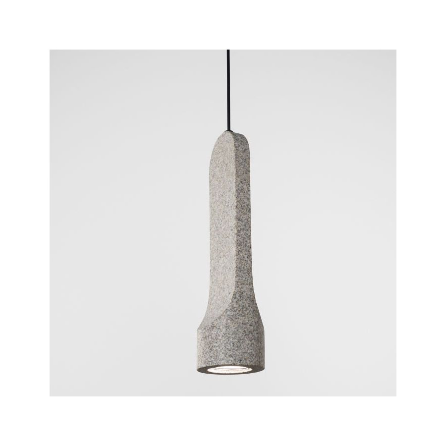 Sten och ljus, två motsatta element som Parga förenar i jakten på en nästan fiktiv bild. Den energi som finns i ett mineral söker frigöras och stråla ut i en intensiv stråle av direkt ljus. Parga är en kollektion som återgår till att använda granit för funktionella och dekorativa ändamål i inomhusmiljöer, och utnyttjar dess neutrala färgpalett och naturliga textur. Denna lampa är tillverkad av tre bitar i olika höjder och diametrar, var och en med ett formspråk som påminner om de mest primitiva och rudimentära stensniderierna. Materialet som används är kasserade bitar av granit som bryts i galiciska stenbrott, vilket möjliggör en mer hållbar användning av material. Graniten som utgör Parga är kompakt, ljust grå i färgen och enhetlig med svarta prickar och fint korn.