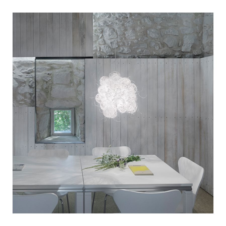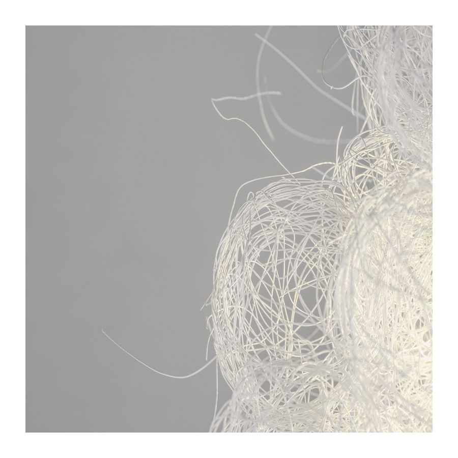 Arturo Álvarez introducerar ståltråd i sitt materialrepertoar med denna kollektion. Genom att vira den om och om igen skapar han sfärer som han senare fogar samman till eteriska, nästan transparenta volymer; vilket ger designen en subtil skönhet. Den vita finishen förstärker ömtåligheten hos ett föremål framställt av ett kallt material såsom stål, som nu tycks blomma fullt av liv.