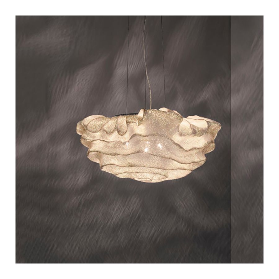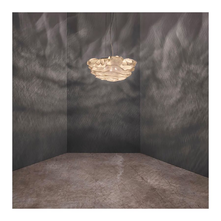 Den mediumstora Nevo-pendellampan visar de oåterupprepbara organiska former som kännetecknar kollektionen designad av Arturo Alvarez. Dess handgjorda kurvor gör varje lampa unik och olik alla andra. De är volymer som tycks vara levande, i ständig utveckling och rörelse, både på grund av sin form och på grund av de veck genom vilka ljuset sprids.