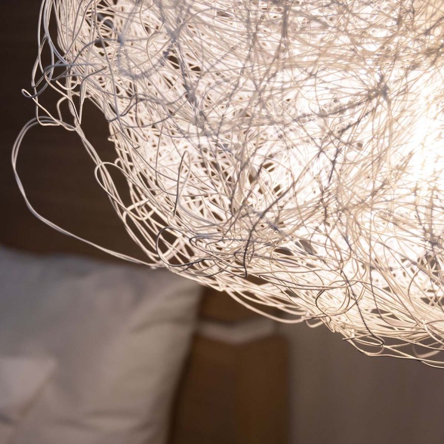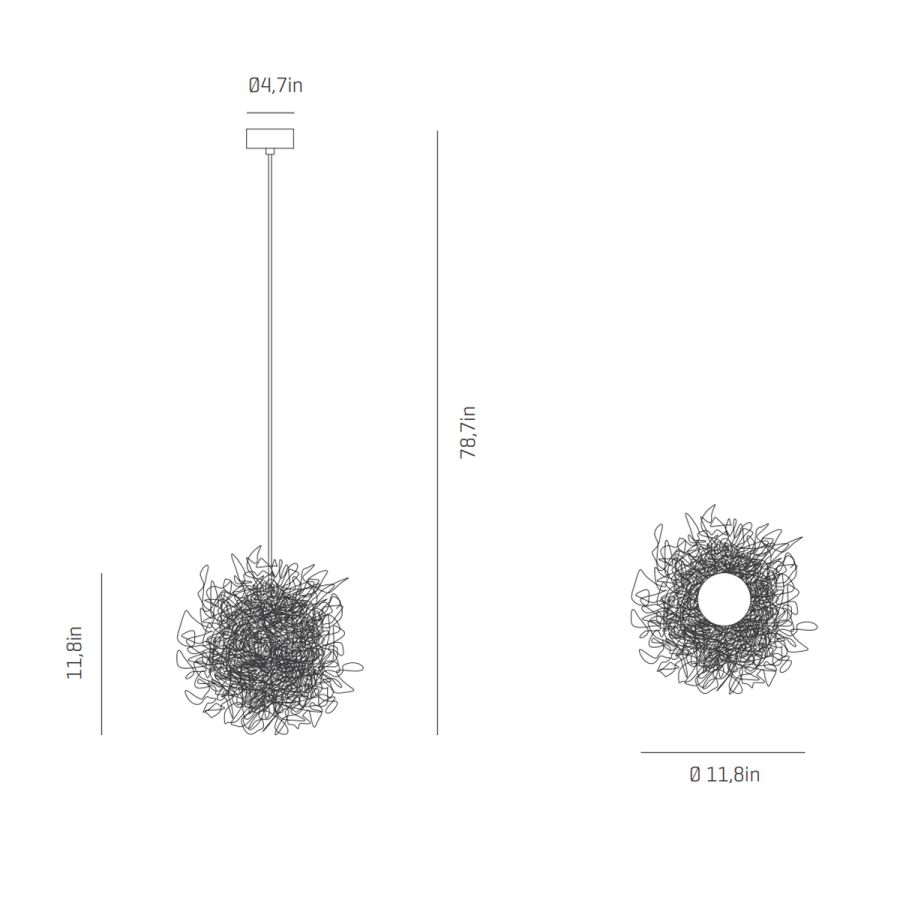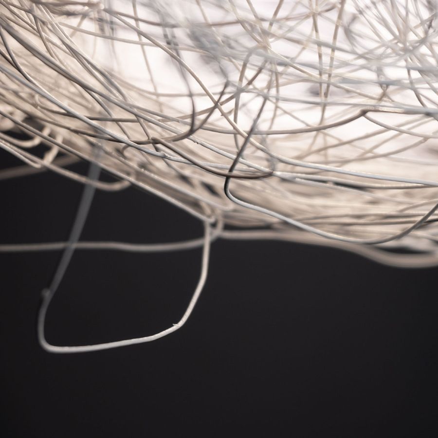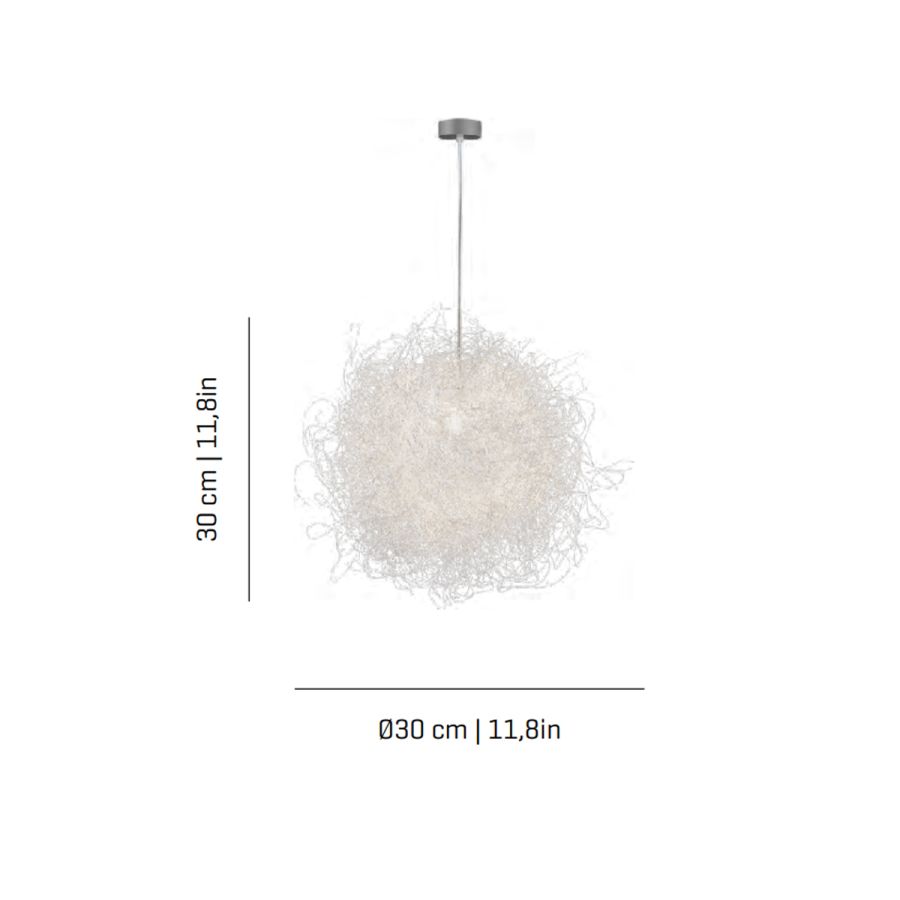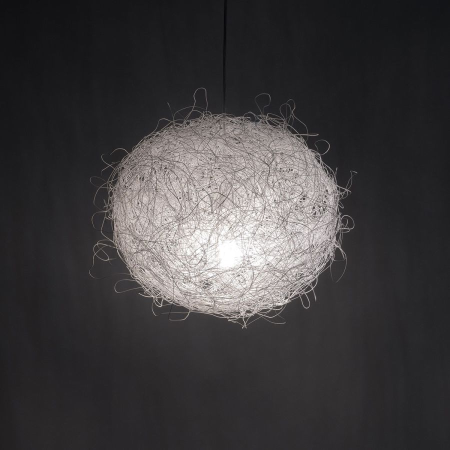 Den PILI mini pendellampan är en enda tråd av målat rostfritt stål som sammanflätas och skapar slumpmässiga volymer utan ordning, och väver en harmonisk och omslutande oregelbundenhet full av charm och mystik. Detta nystan genom vilket ljuset sipprar ut är handgjort i Spanien. Kollektionen presenteras i 3 lampstorlekar som låter dig skapa kompositioner med stor visuell effekt.
