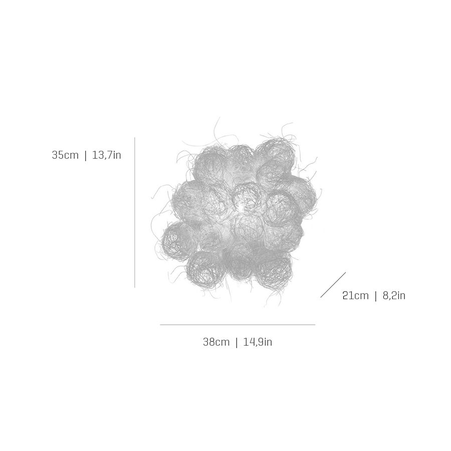 Arturo Álvarez introducerar ståltråd i sitt materialrepertoar med denna kollektion. Genom att vira den om och om igen skapar han sfärer som han senare fogar samman till eteriska, nästan genomskinliga volymer; vilket ger en design av subtil skönhet. Dess vita ytbehandling ökar ömtåligheten hos en pjäs som genererats från ett kallt material som stål, som nu tycks blomma av liv.