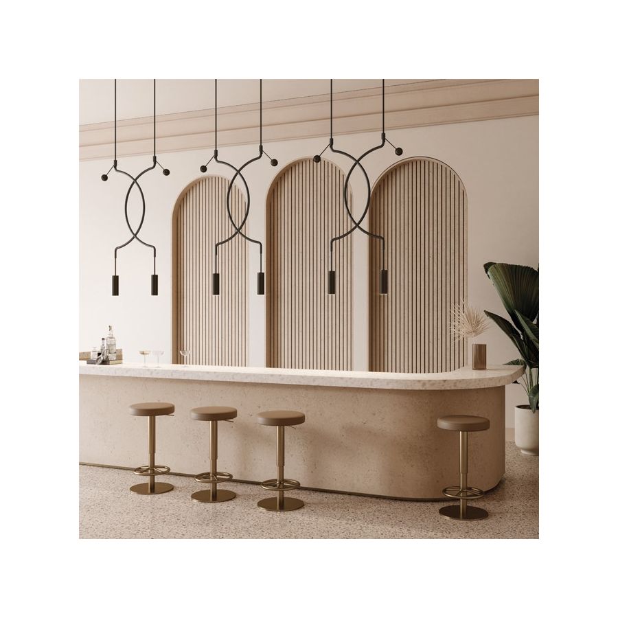 Liaison is a distinctive suspension lamp that artfully combines three geometric forms – sphere, circle, and cylinder – into a light, elegant structure. Handcrafted in metal with refined finishes, it exudes sophistication and character. Available as a single pendant or in multi-light compositions, Liaison offers versatile illumination for any space, seamlessly blending aesthetics with functionality.