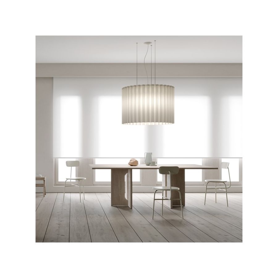 Skirt draws inspiration from fashion, translating its fluid silhouette into a refined lighting design. With a graceful form and a range of sizes and shades, it adapts seamlessly to any style or space. Available in suspension and ceiling versions, Skirt adds a touch of sophistication with its understated elegance.