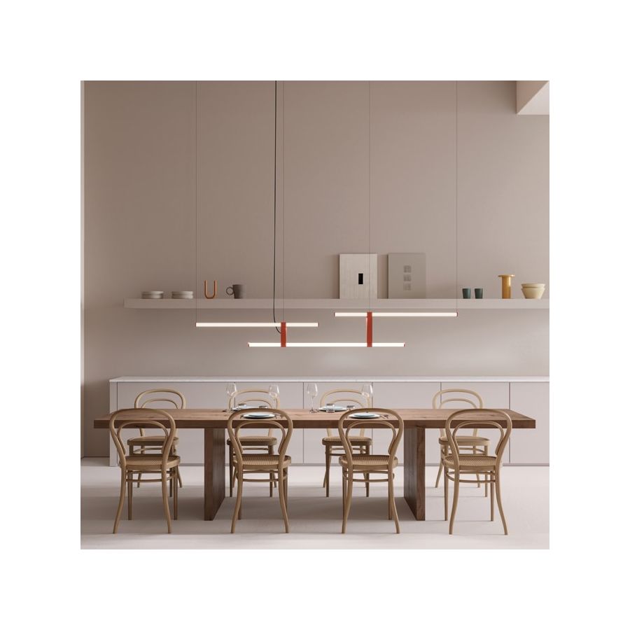 Paralela, designed by Spain’s Nahtrang Studio, is a modular system that transforms light into a tangible decorative element. It features illuminated borosilicate glass cylinders, connected by Nylon PA12 joints, creating a dynamic interplay of light and form. Available in horizontal and vertical pendants, as well as table, floor, and wall versions in various sizes, Paralela offers a versatile and harmonious lighting solution.