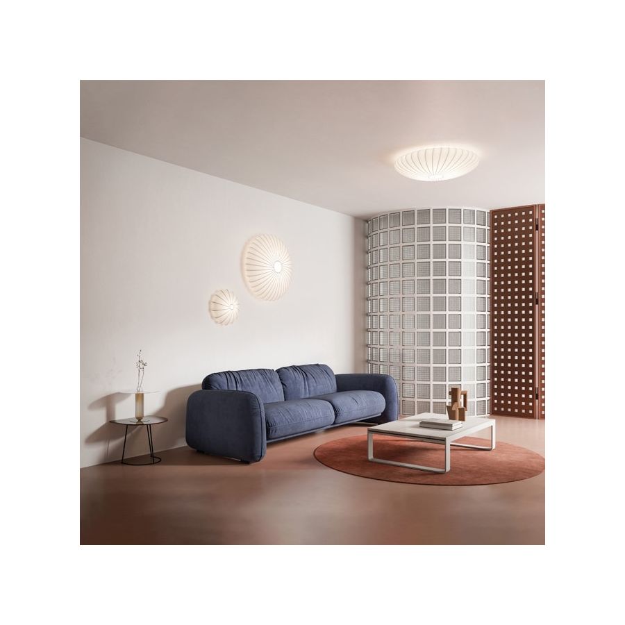 Some design lamps transcend time, remaining as beautiful and contemporary today as when they were first created. Muse is one of them – an architectural element that enhances walls and ceilings. Its metal structure, reminiscent of flower petals, is wrapped in an elastic, interchangeable fabric, blending elegance with versatility.