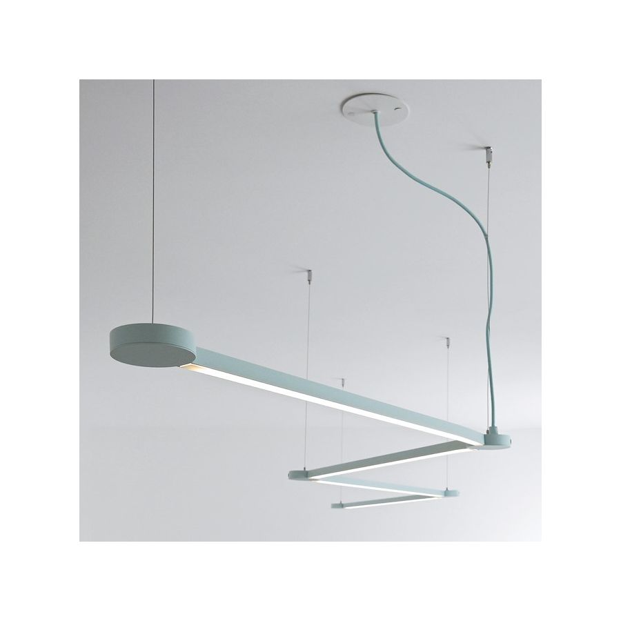 With Poses, designers can compose endless geometric configurations, diffusing light through intersecting straight lines and junction points. The system features 359° rotatable linear modules linked to circular satellites with a magnetic cover. Available in suspension, wall, and ceiling versions, Poses offers versatile lighting solutions for any space.