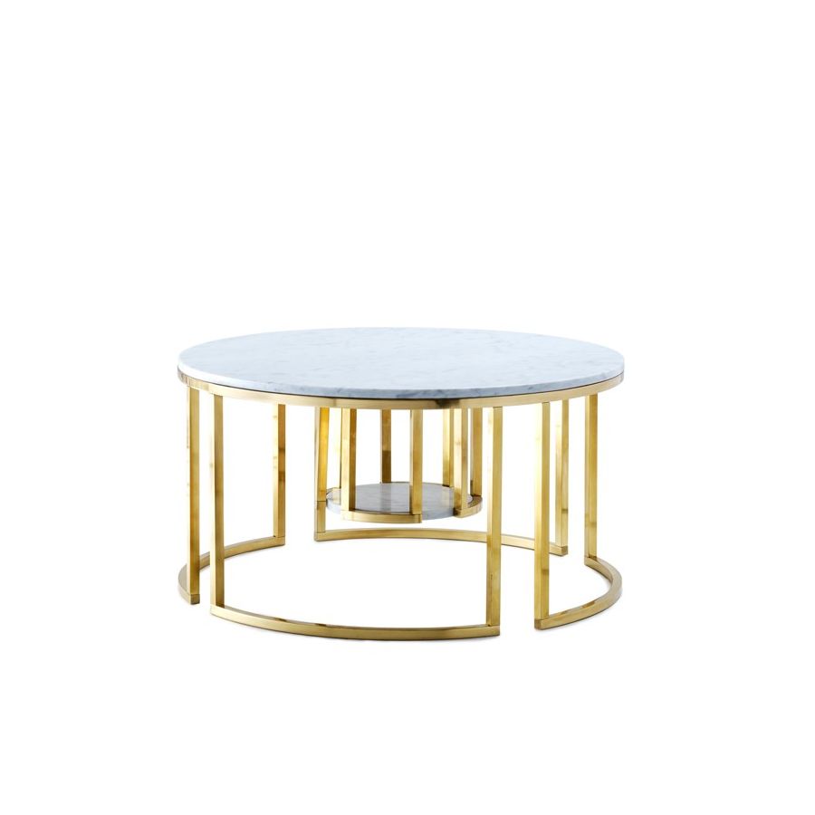 Simply Coffee Table. Carrara Marble Top And Brass Legs