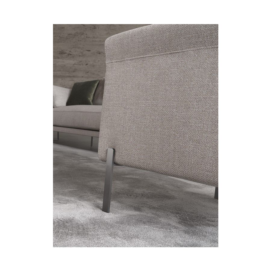 Babila consists of central and terminal elements, which come together sinuously to make even more new settings and combinations. It is characterized by a light air shell, lined with inviting cushions enhanced with hand made stitching, and by the choice of apparently slender but strongly structured foot.
