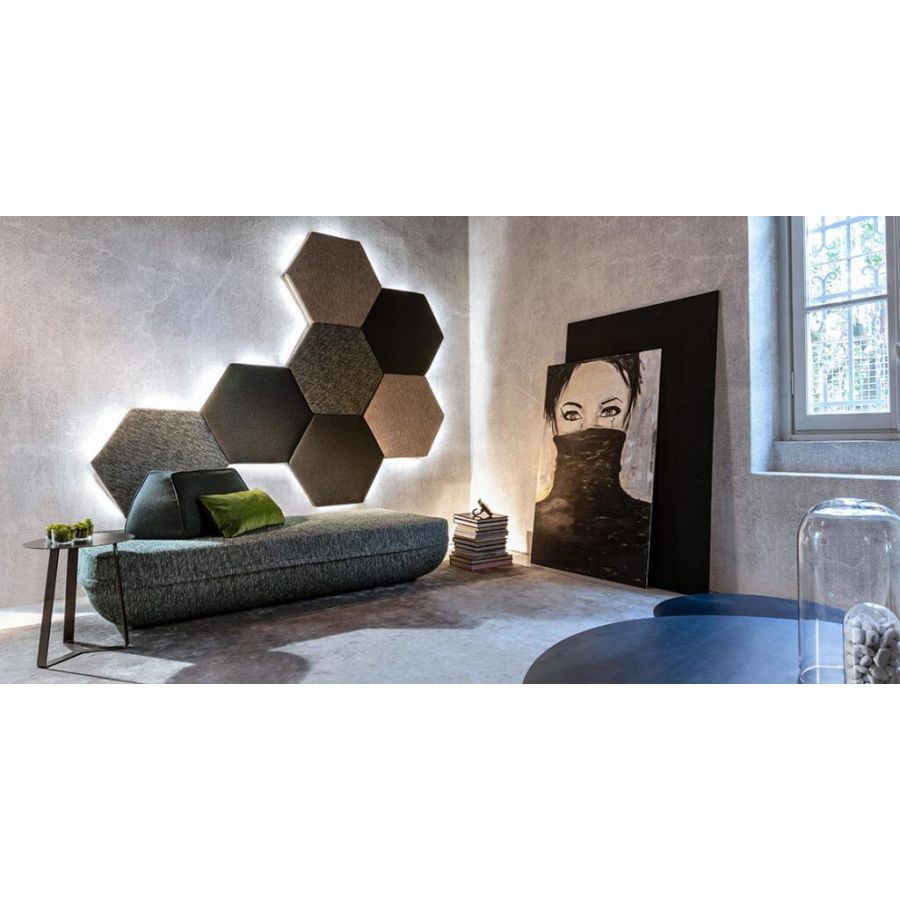 The appeal of geometric shapes, the possibility of integrating a sound system and becoming a light source combined with the wide range of fabrics are the main features of oregon.