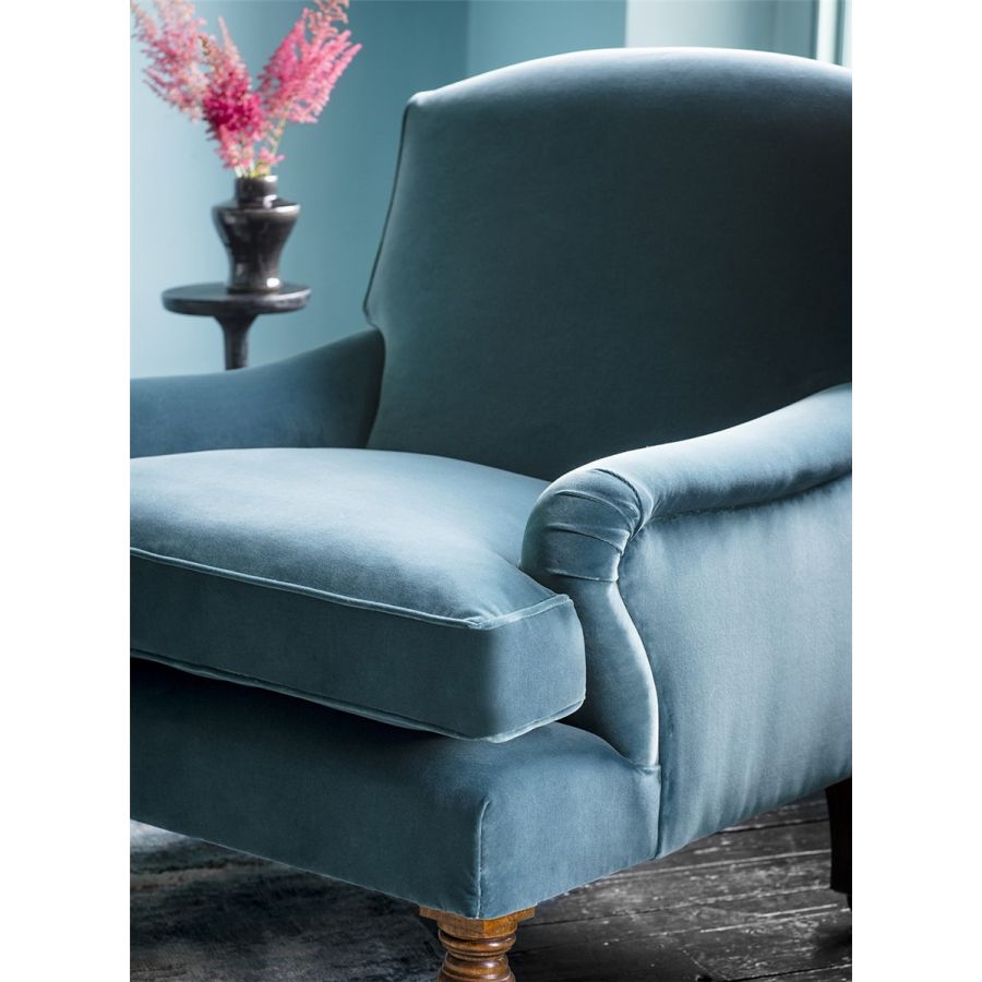 Coleridge is an elegant armchair, medium in size, with a firm upright back, comfortable seat and separate seat cushion.