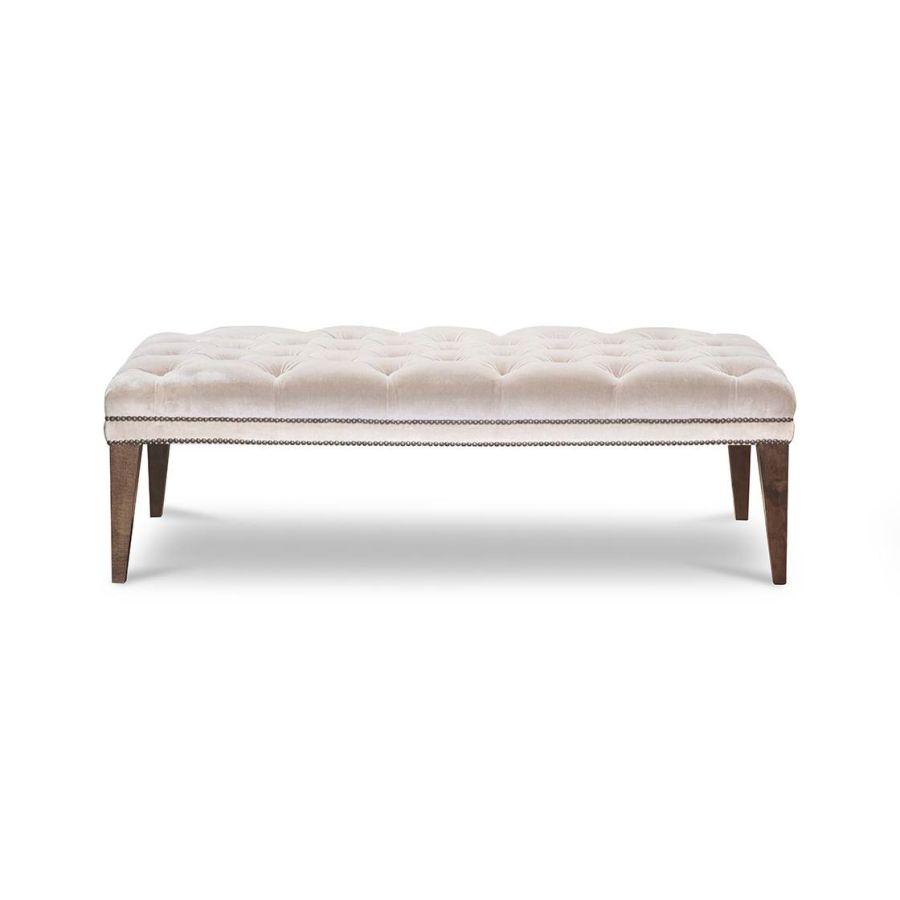 This understated footstool sits effortlessly within contemporary and classic interiors alike. The beautiful, hand-stitched buttoning is perfect for silk or velvet upholstery. Also available without buttoning.