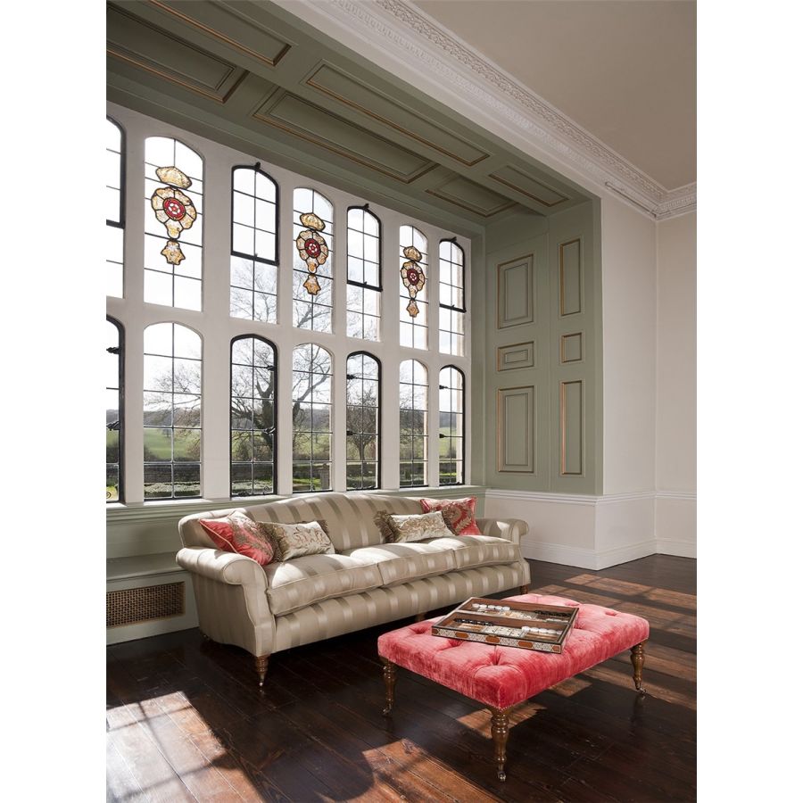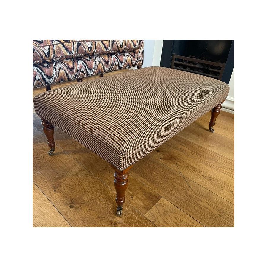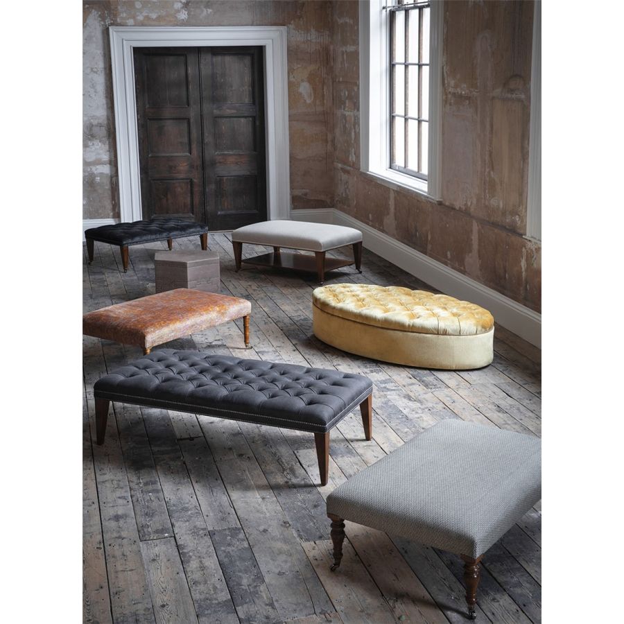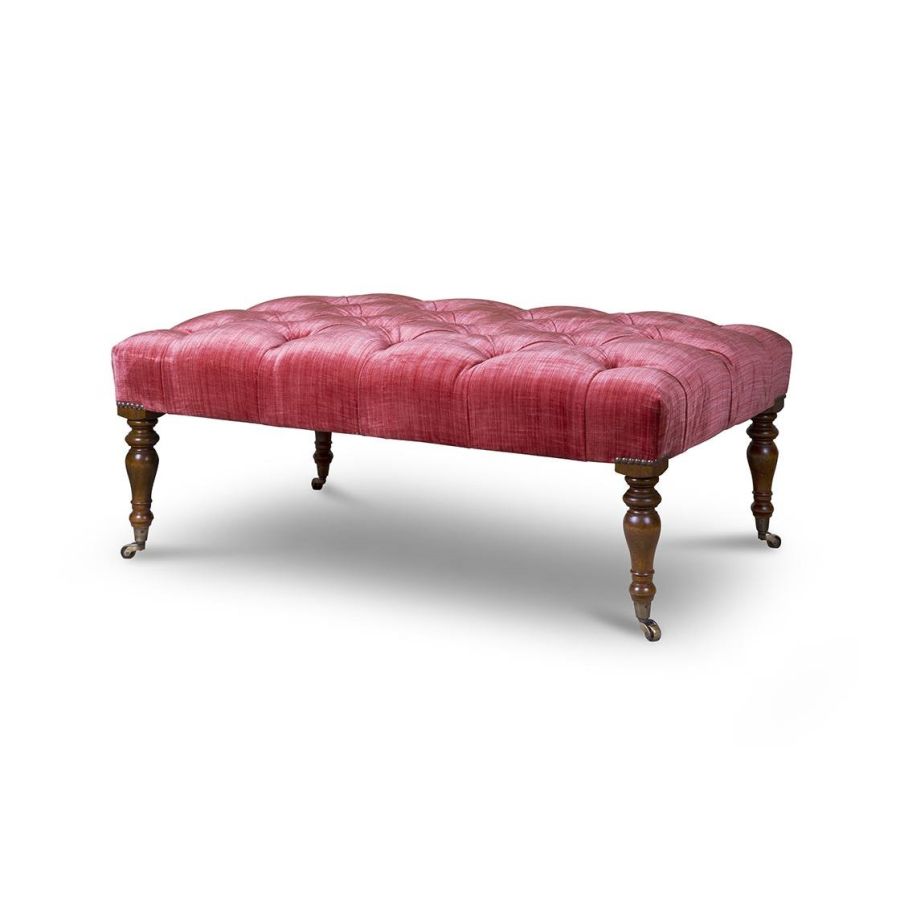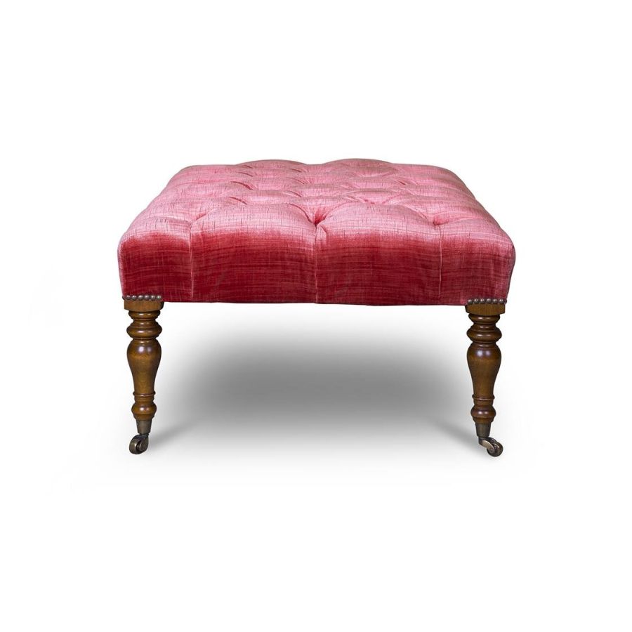 The Victorian footstool’s elongated legs, in hand-turned wood, give this beautiful piece its period feel. Also available without buttoning.