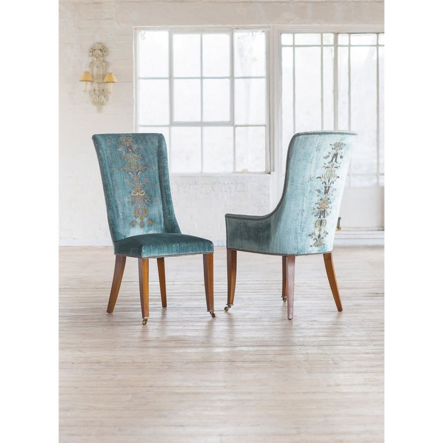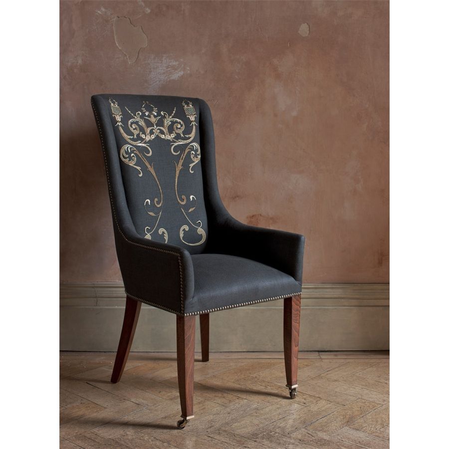 The Kingsley dining chair is a signature Beaumont & Fletcher design, with its tall, gently arching back and tapered legs giving a classic English feel. Also available as a carver dining chair and bar stool.
